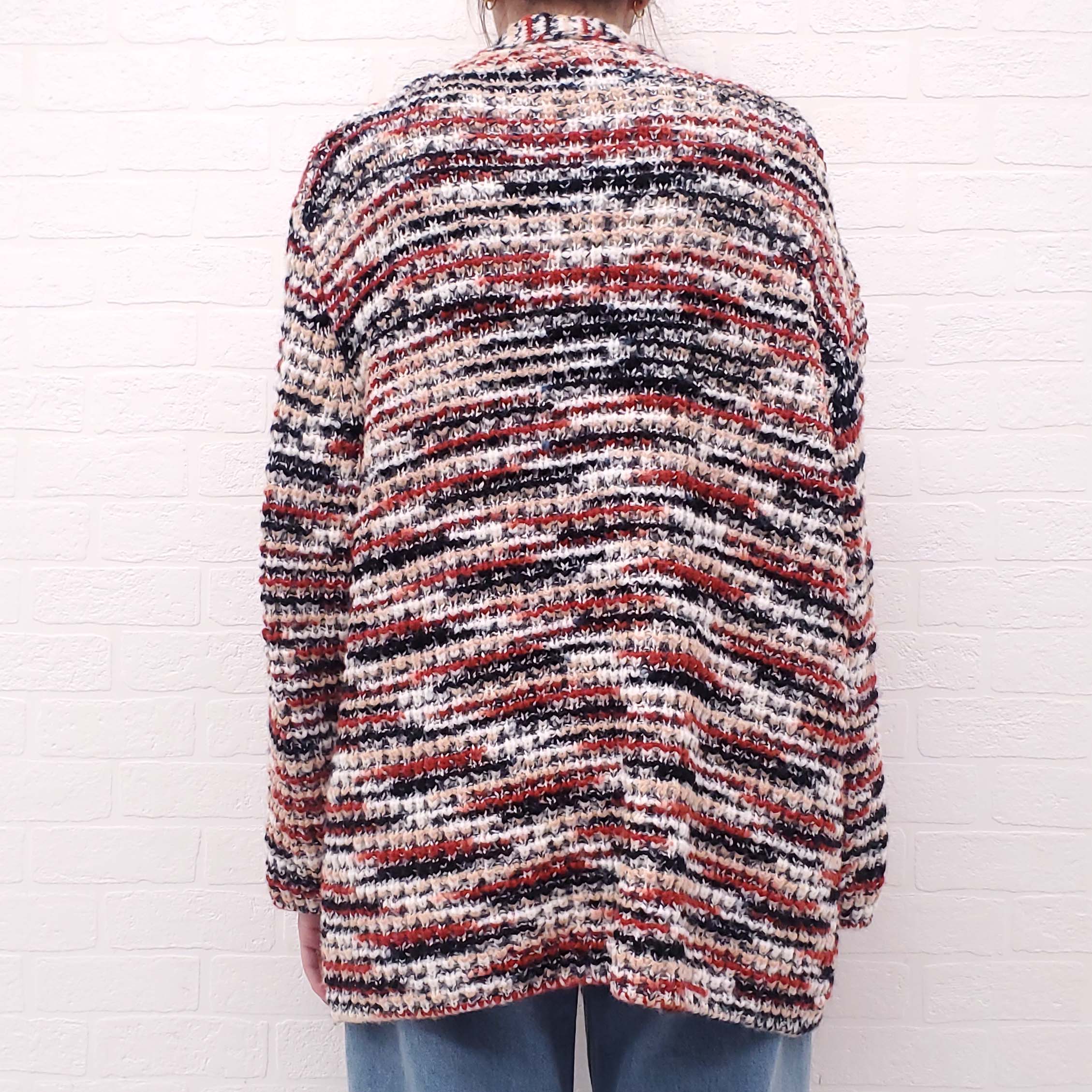 MISSONI CREAM, RED AND BLACK CHUNKY KNIT CARDIGAN - SIZE S