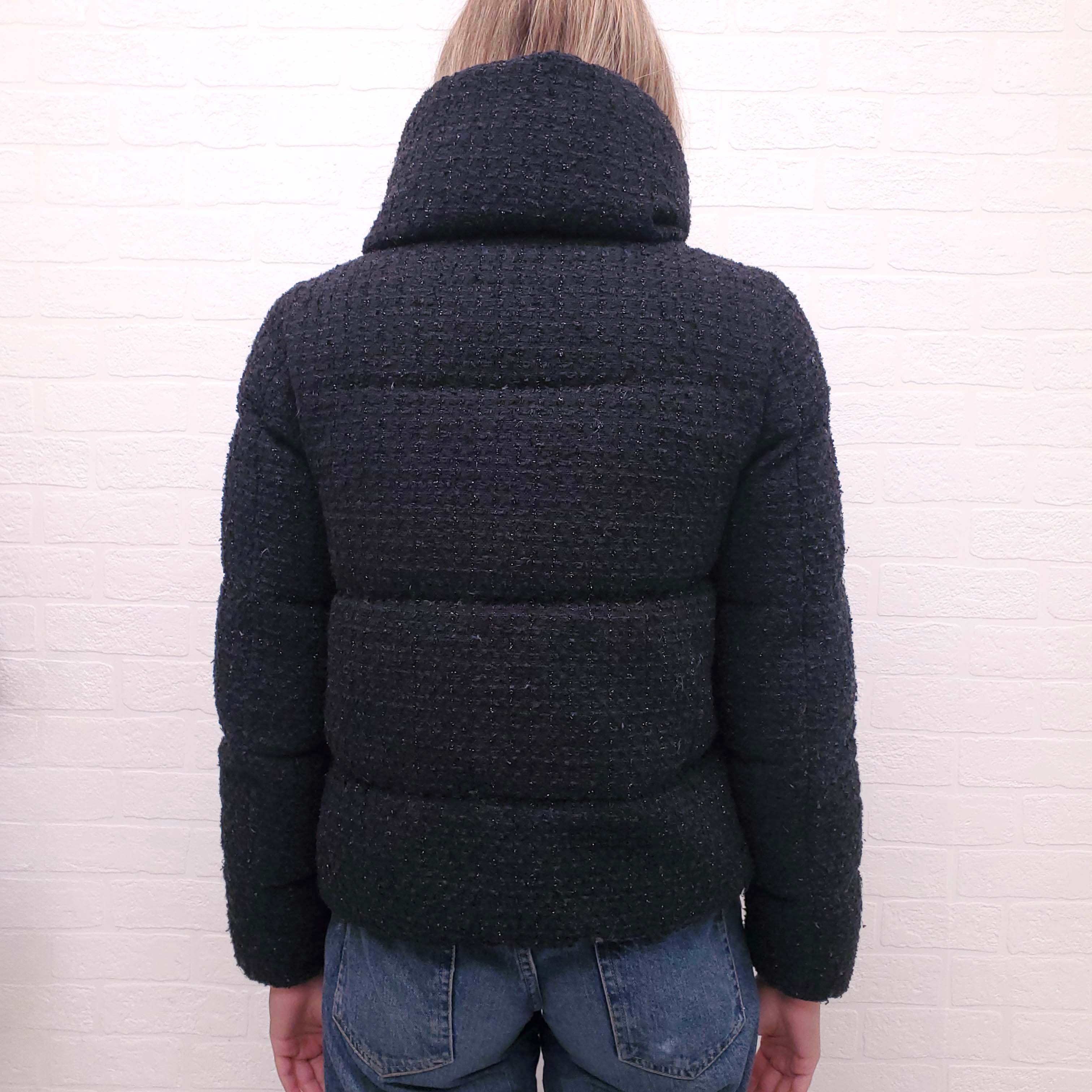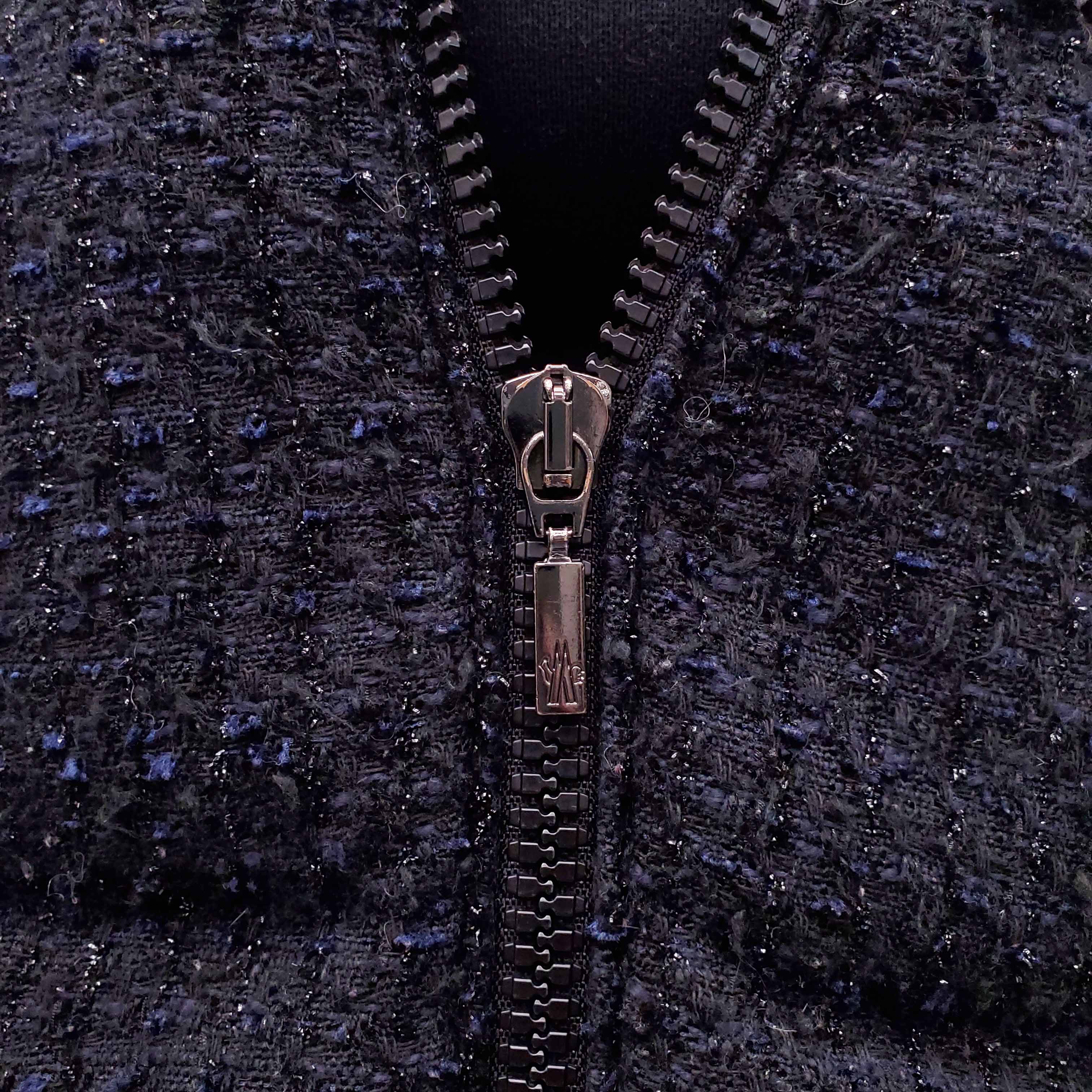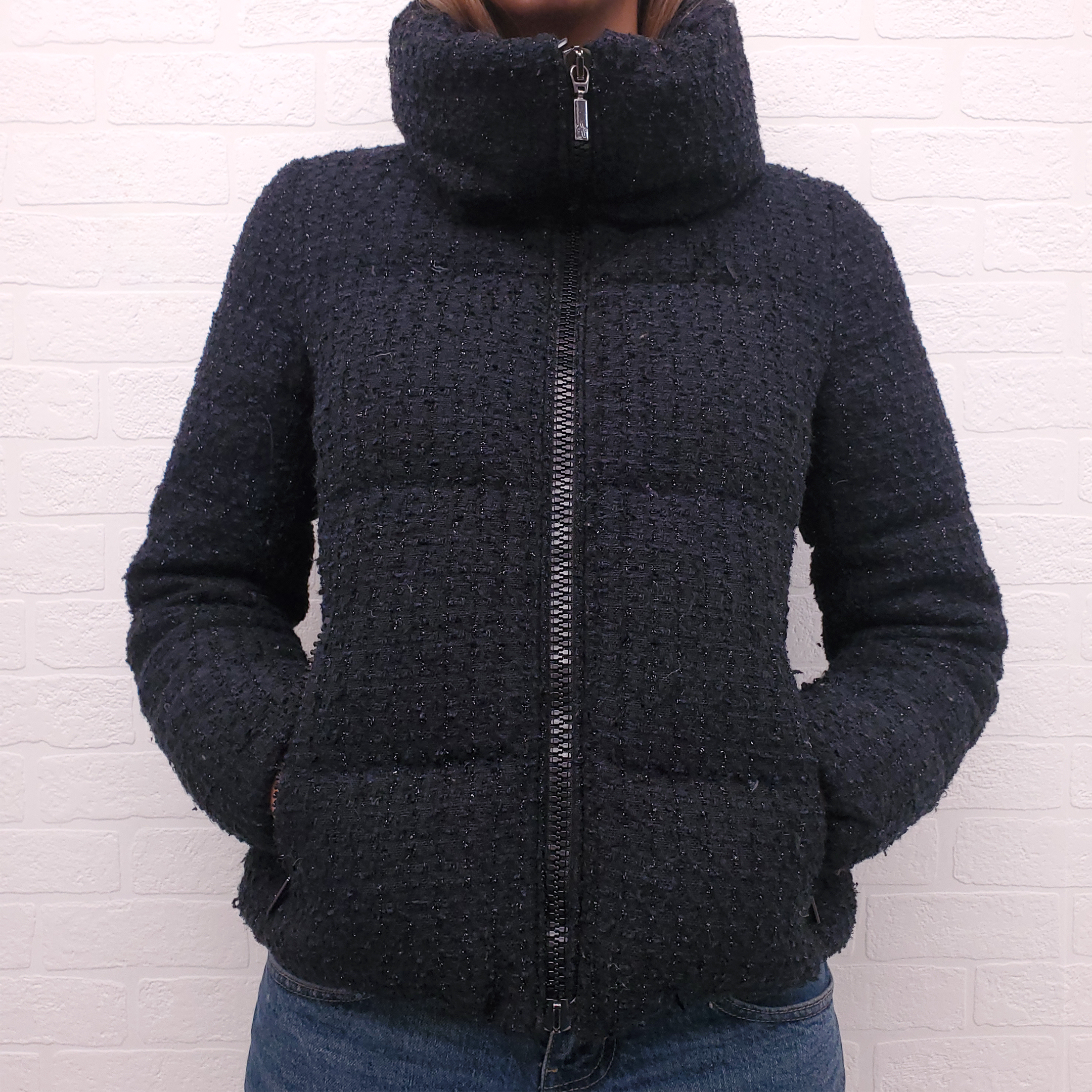 MONCLER BLACK AND NAVY TWEED PUFFER JACKET - SIZE O/XS