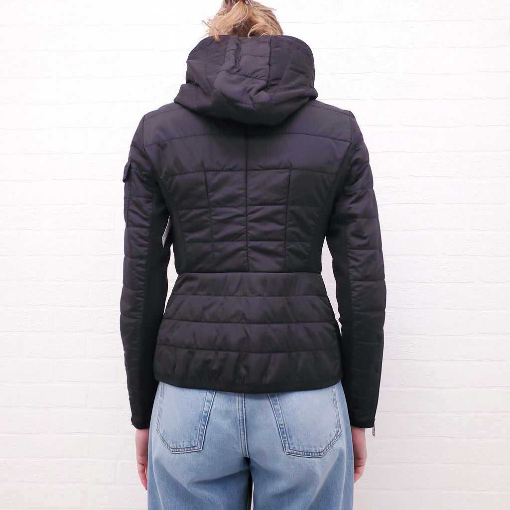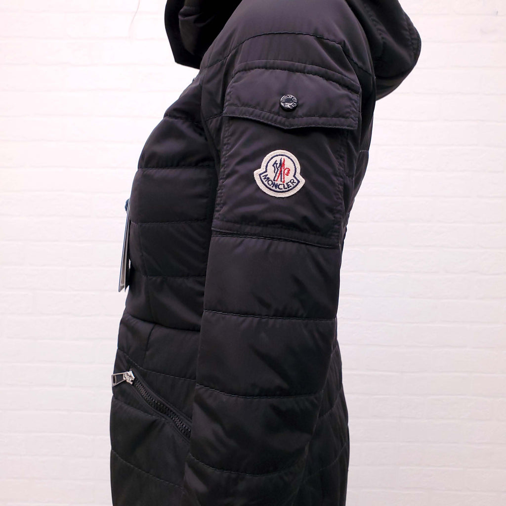 MONCLER BLACK LIGHT PUFFER JACKET WITH HOOD AND ZIPPERS - SIZE 1/S
