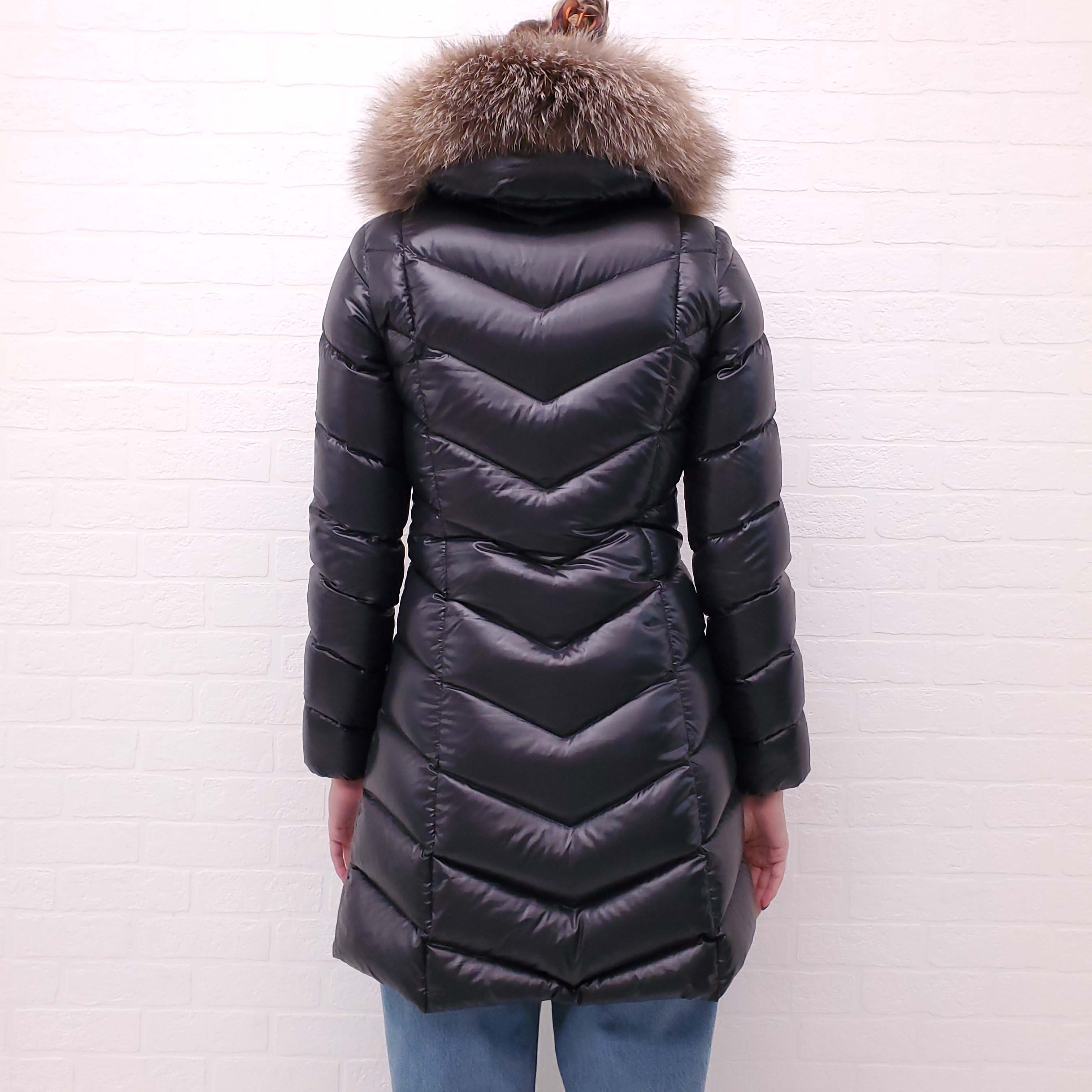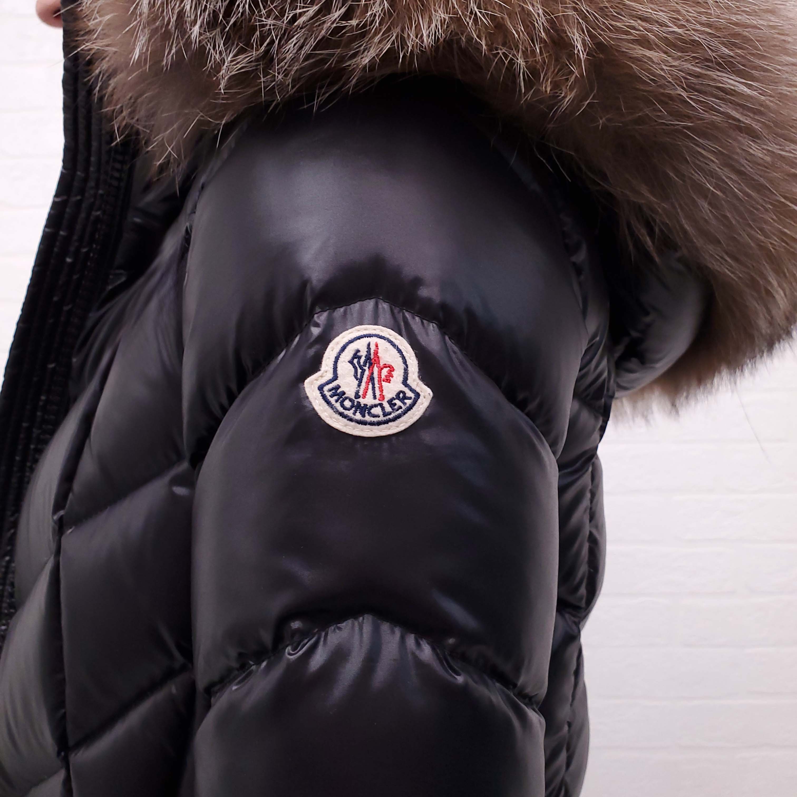 MONCLER BLACK LONG PUFFER JACKET WITH FUR AND LOGO - SIZE 0/XS