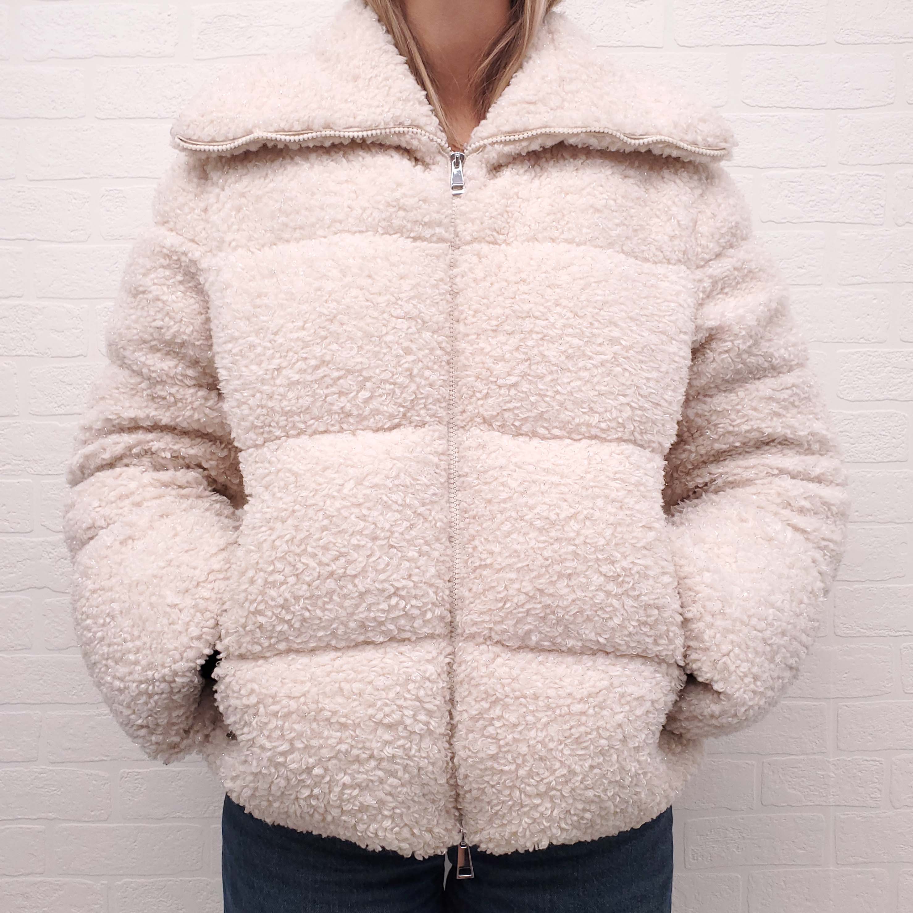 MONCLER CREAM TWEED PUFFER JACKET - SIZE 1/S