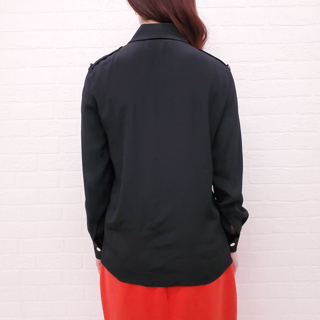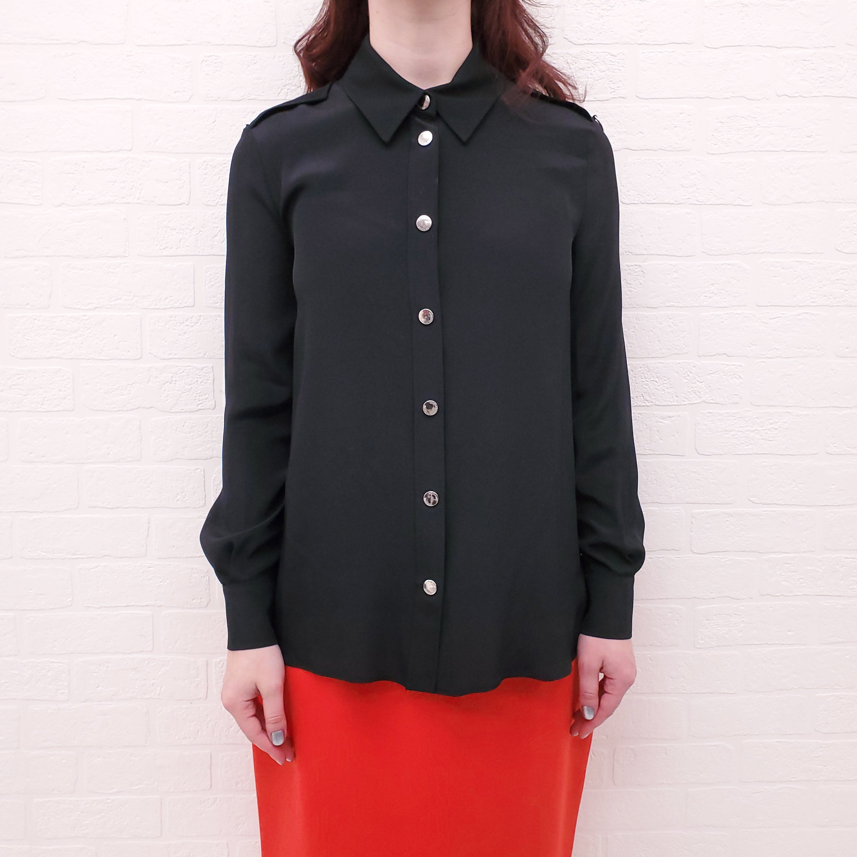 MOSCHINO BOUTIQUE BLACK BLOUSE WITH CHAIN DETAIL - SIZE 6