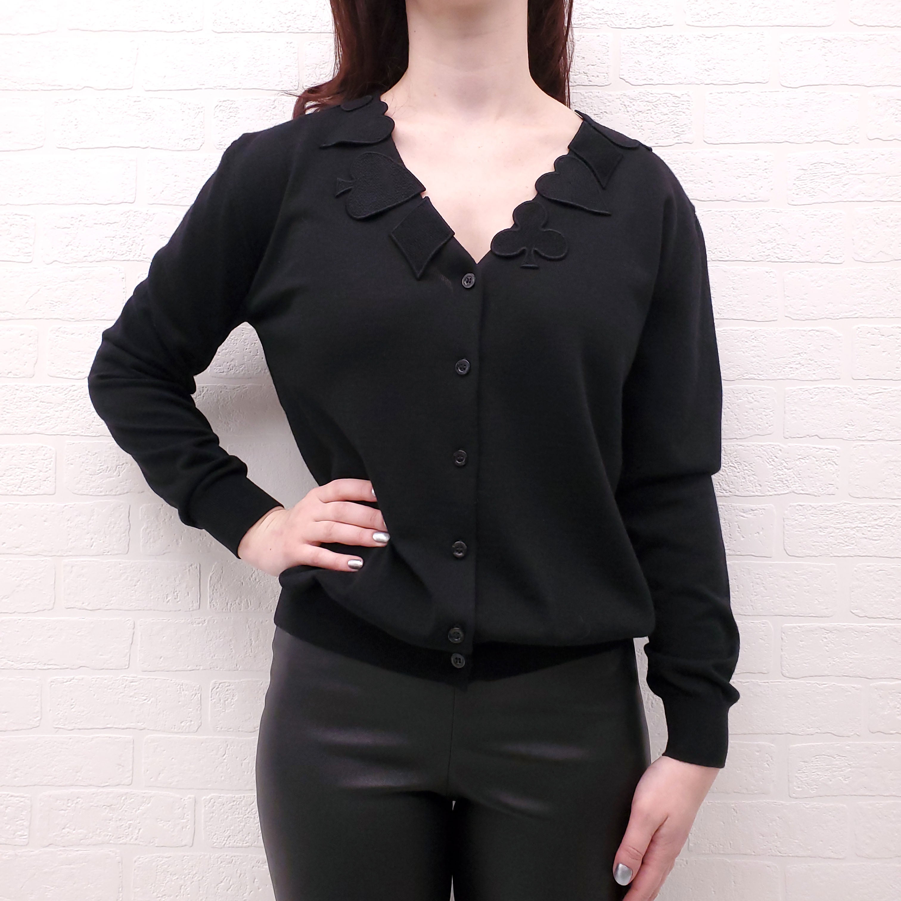 MOSCHINO BOUTIQUE BLACK HOUSE OF CARDS CARDIGAN - SIZE 10