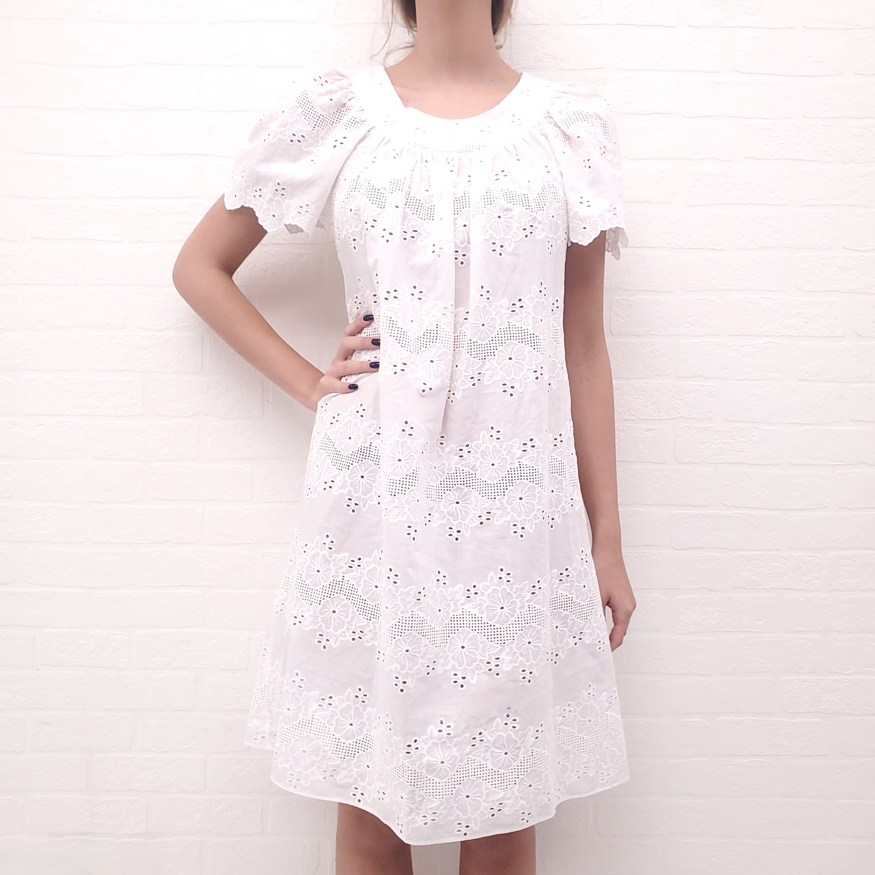 NATALIE MARTIN WHITE FLORAL EYELET DRESS - SIZE XS