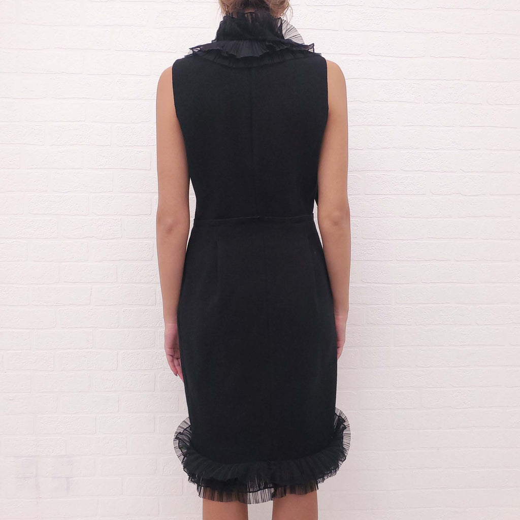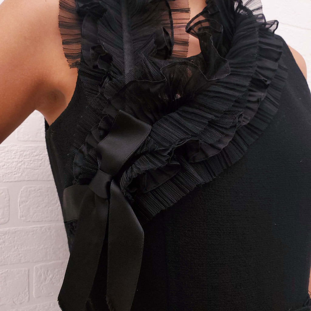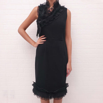 OSCAR DE LA RENTA BLACK LACE DRESS WITH PLEATED AND BOW DETAIL - SIZE 8