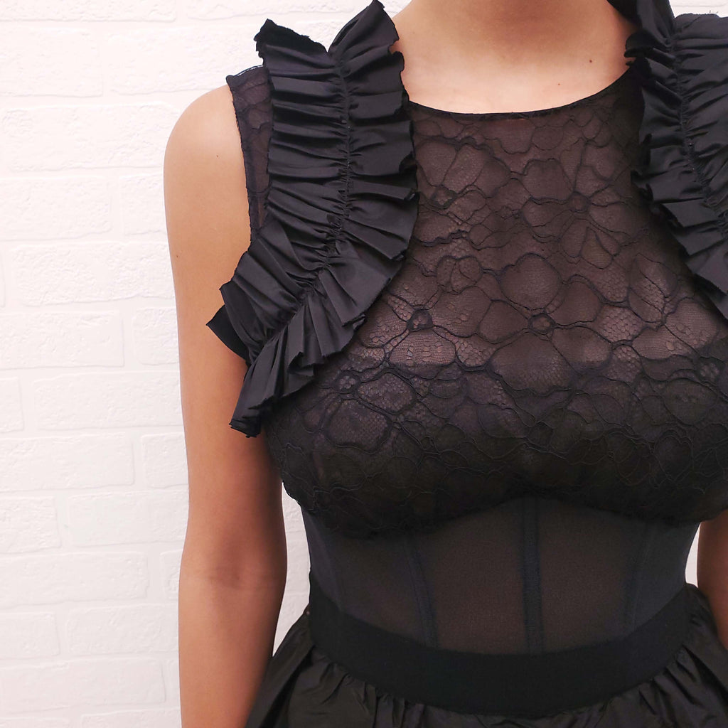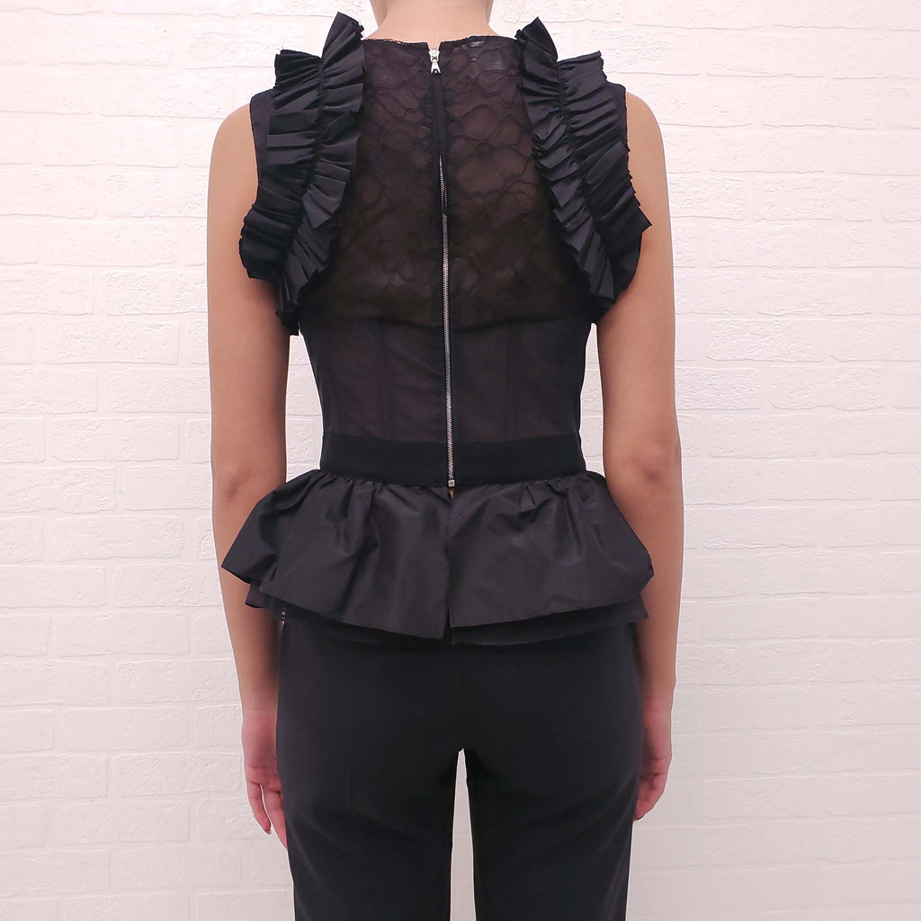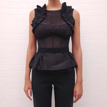 OSCAR DE LA RENTA BLACK LACE CORSET TOP WITH RUFFLE DETAIL - SIZE 6
