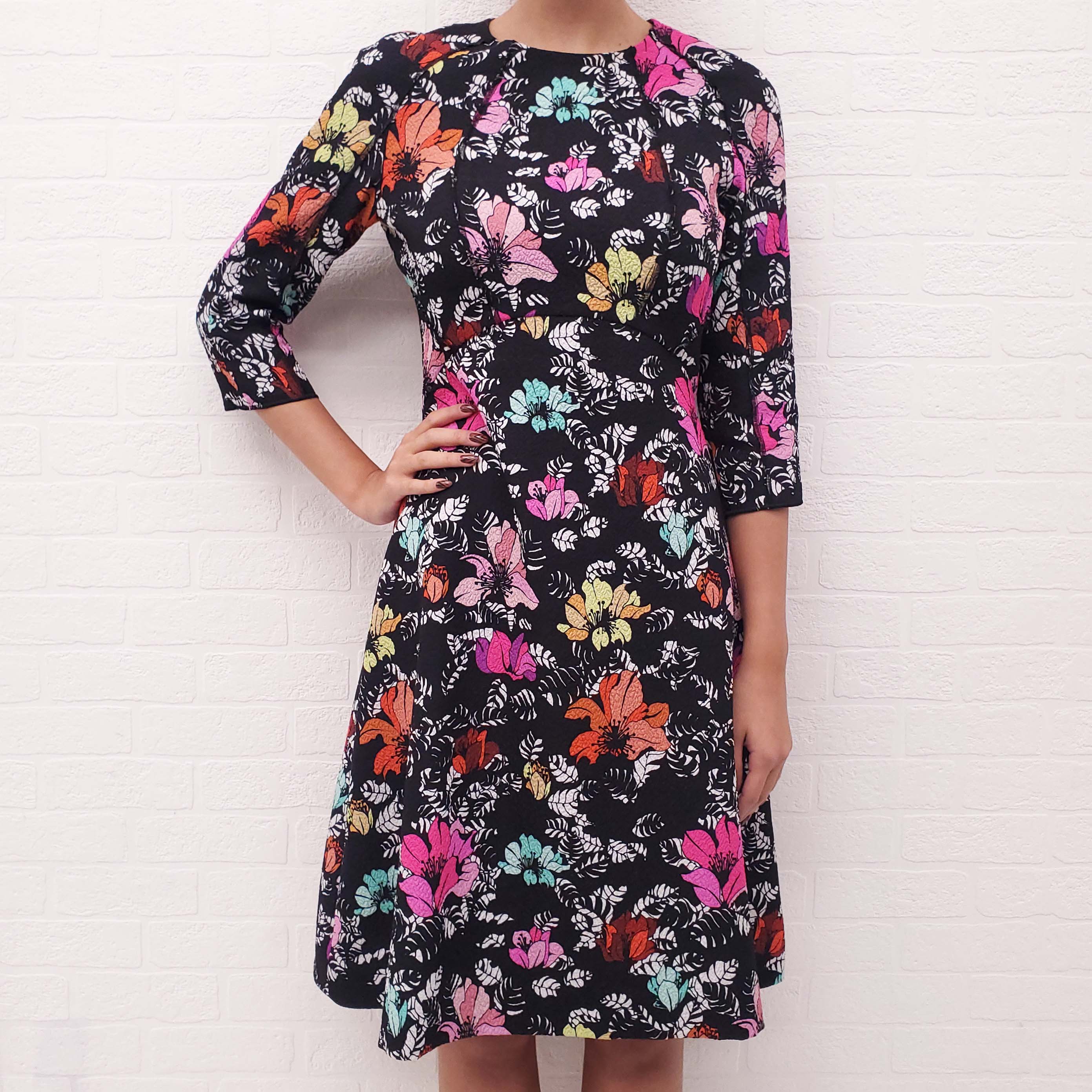 OSCAR DE LA RENTA MULTI-COLOUR FLORAL DRESS - SIZE 6