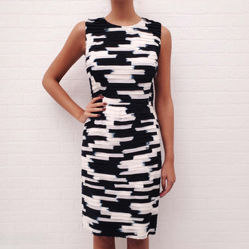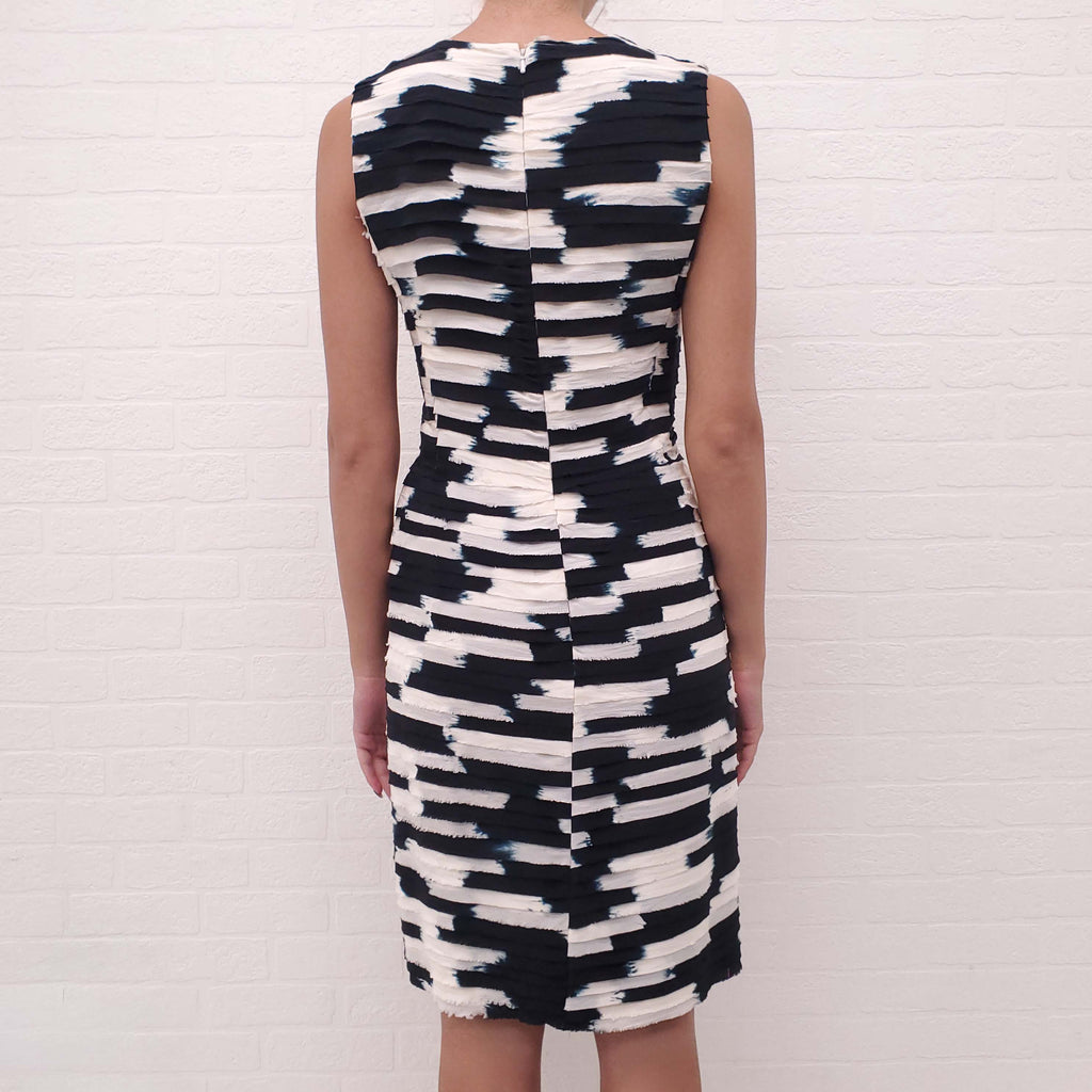 OSCAR DE LA RENTA NAVY AND WHITE PLEATED DRESS - SIZE 6
