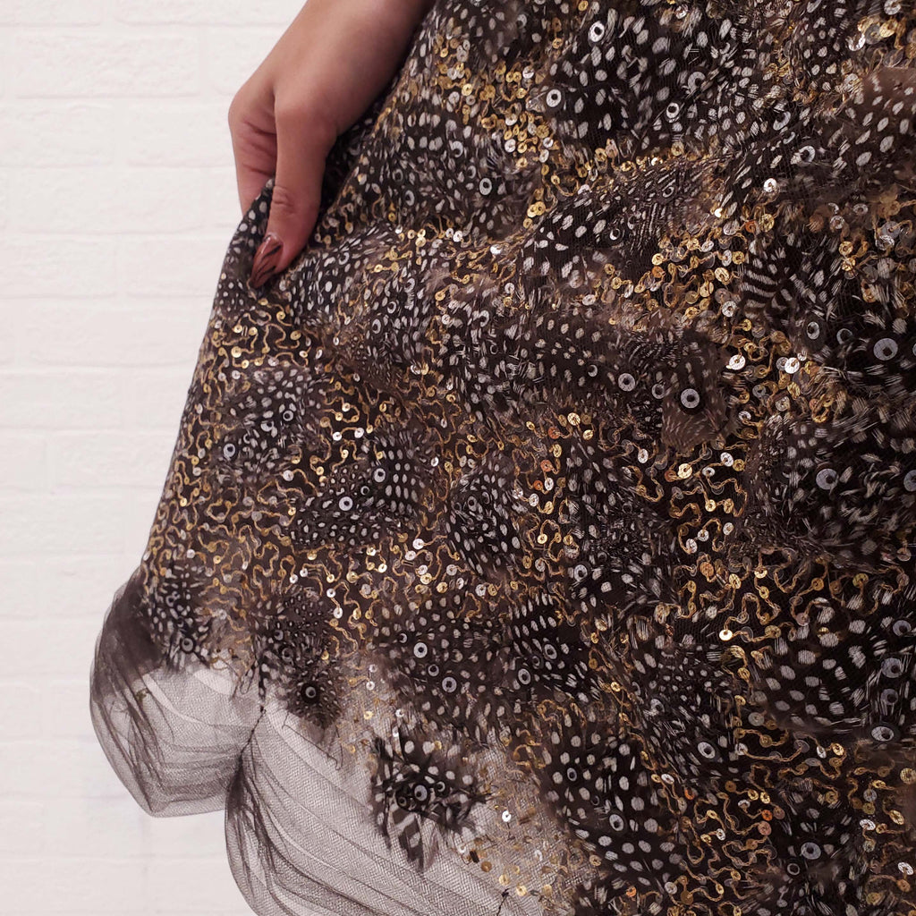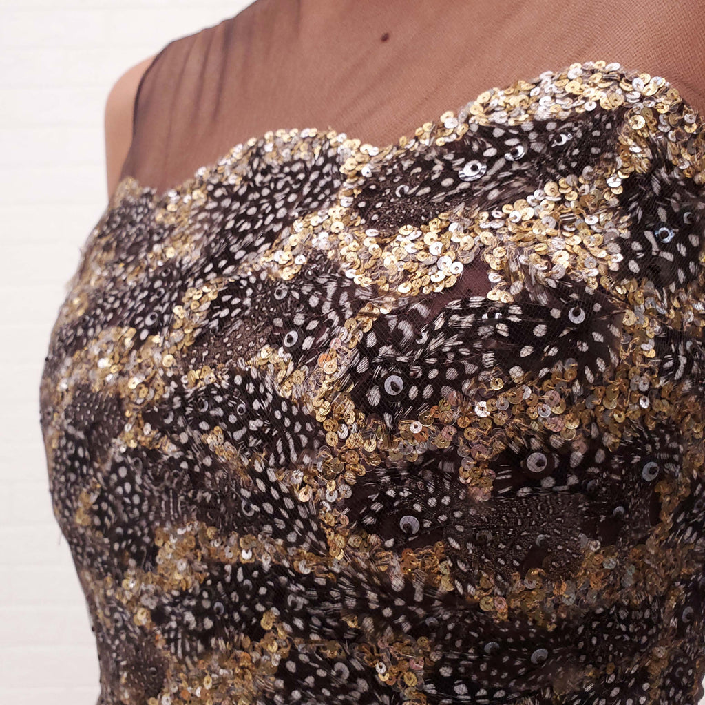 OSCAR DE LA RENTA SEQUIN AND FEATHER TULLE DRESS - SIZE 6