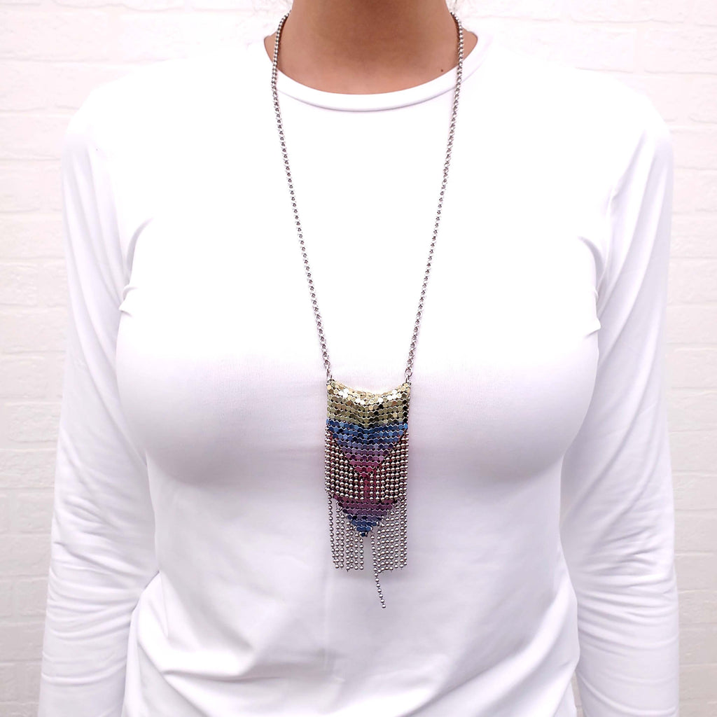 PACO RABANNE MULTI-COLOUR FRINGE CHAINMAIL POUCH NECKLACE