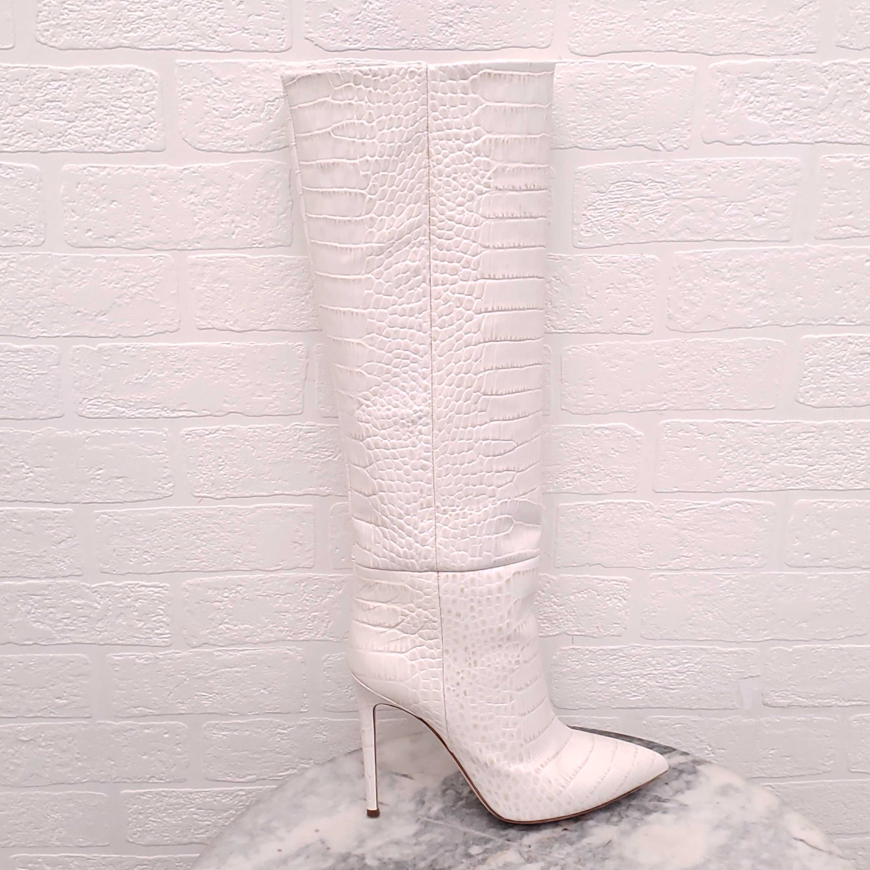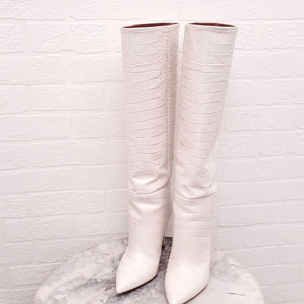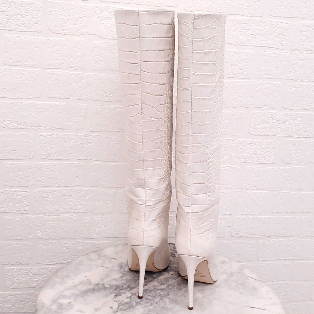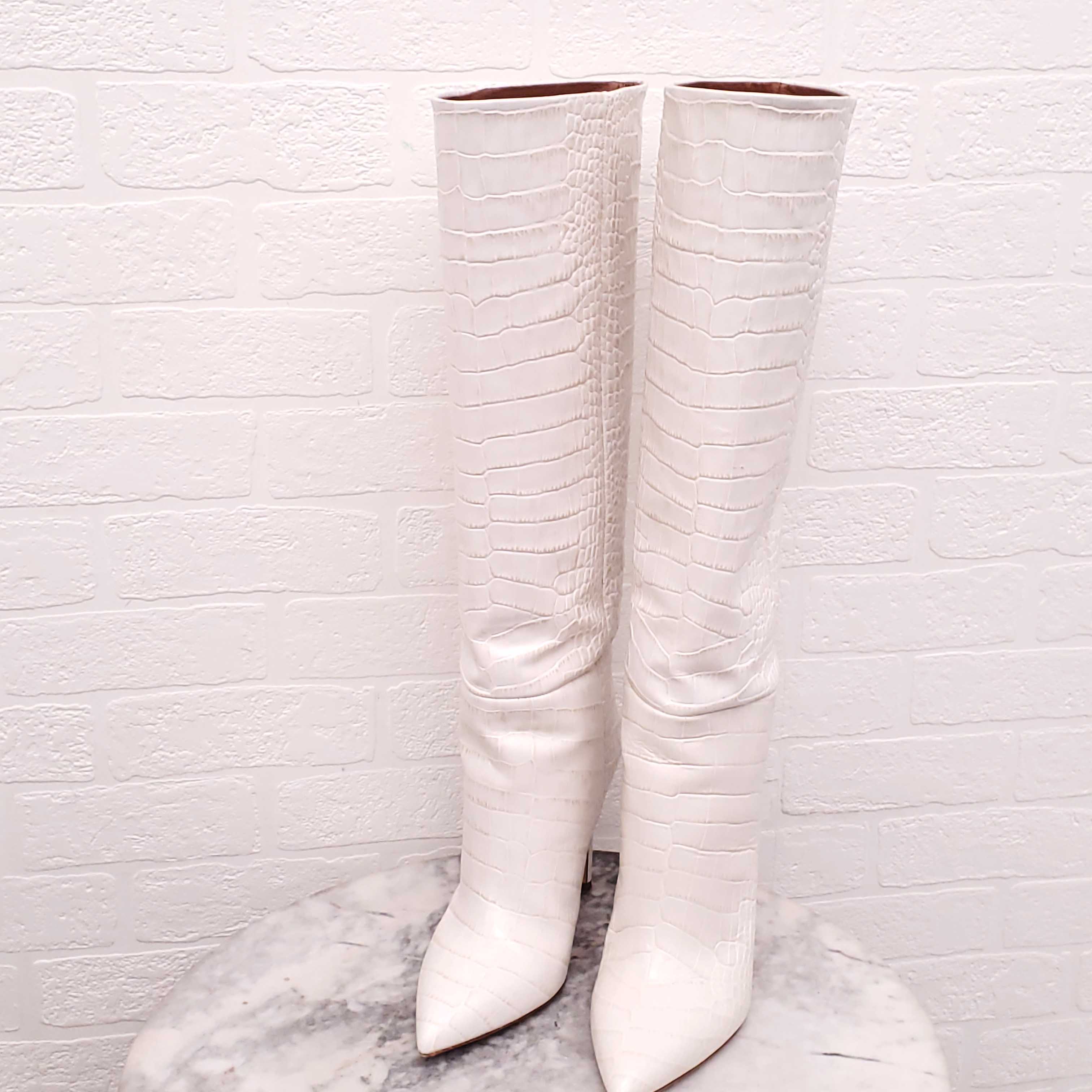 PARIS TEXAS WHITE CROC-EFFECT LEATHER KNEE HIGH BOOTS - SIZE 39