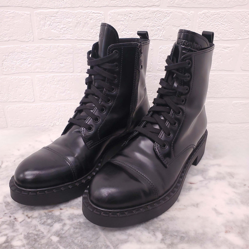 PRADA BLACK COMBAT BOOTS WITH LOGO - SIZE 40