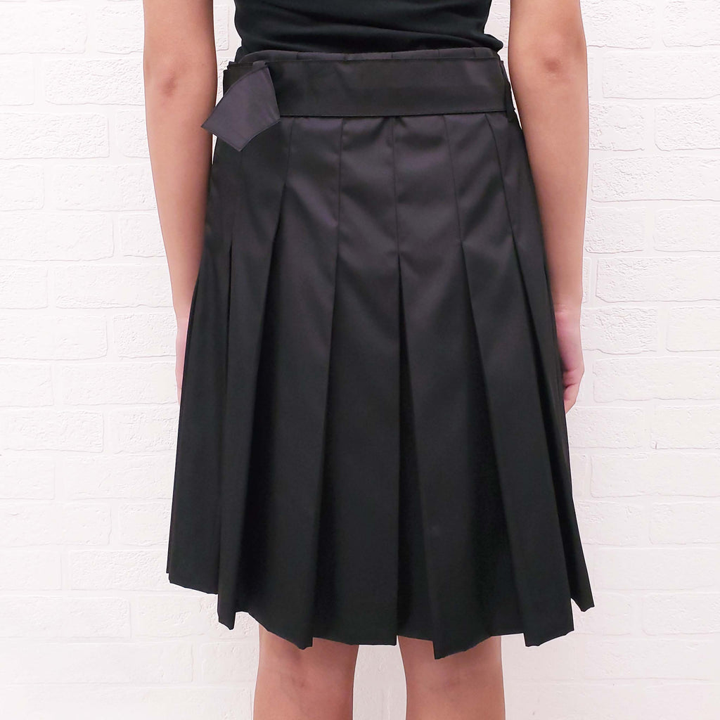 PRADA BLACK NYLON SKIRT WITH RIBBON AND BUCKLE DETAIL - SIZE 38