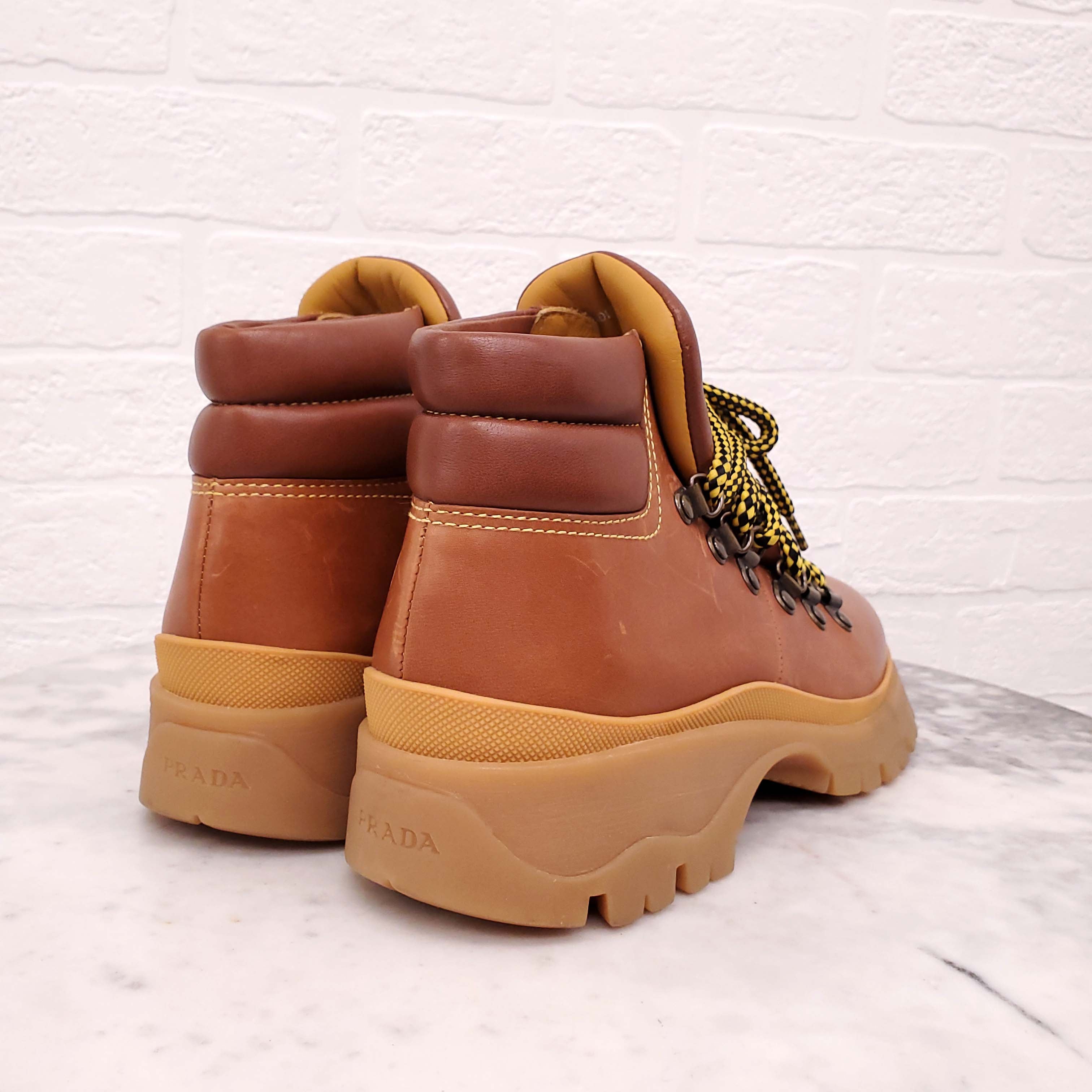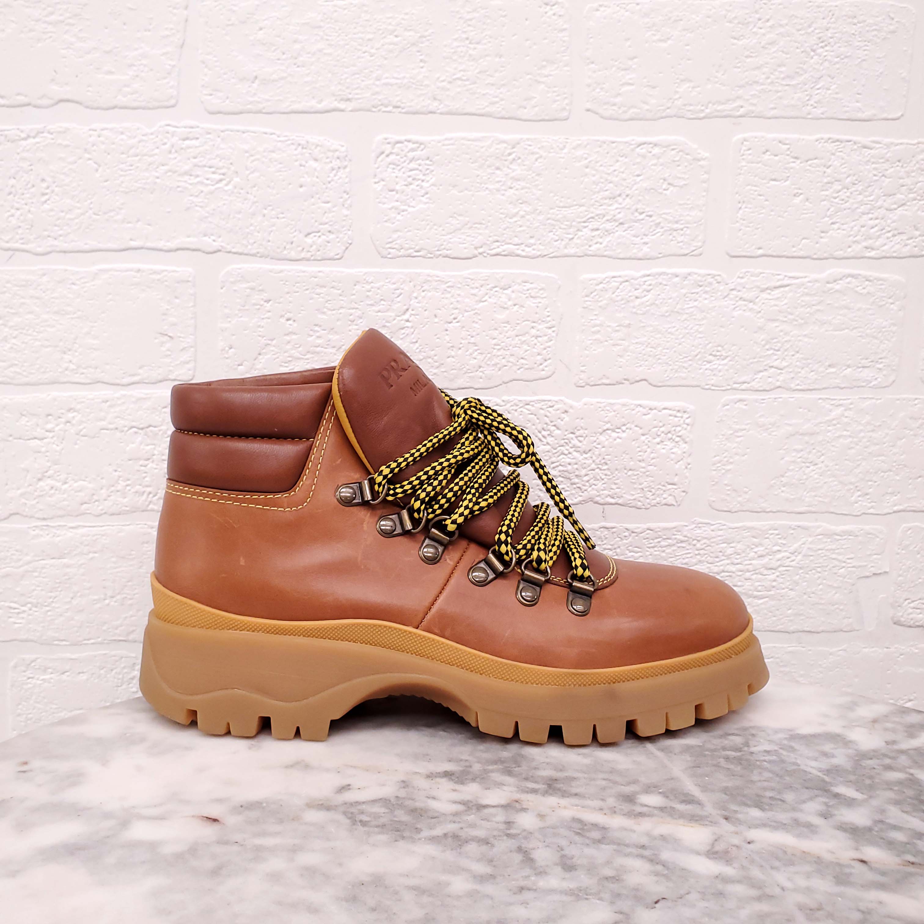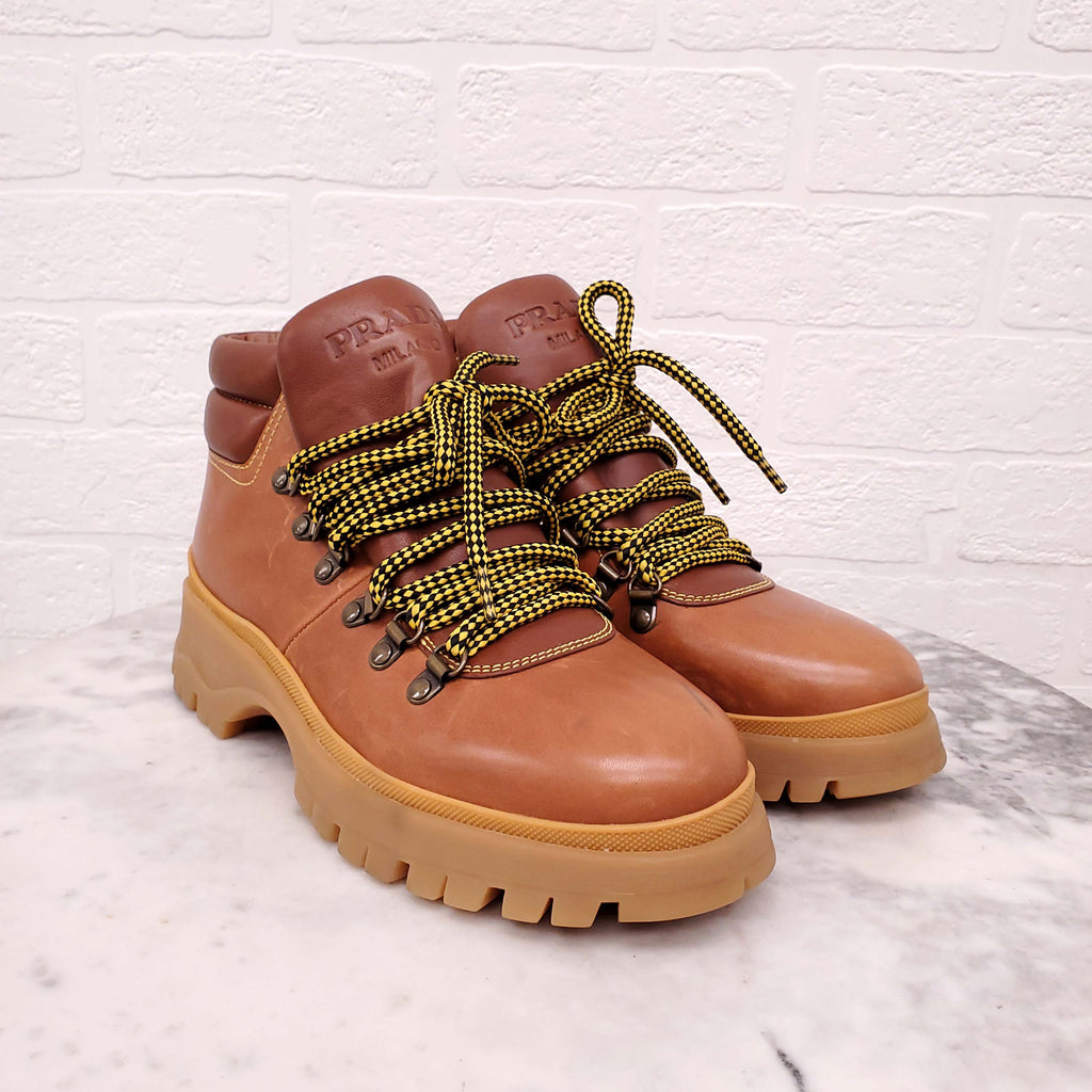 PRADA BROWN BOOTS WITH LOGO AND YELLOW LACES - SIZE 37