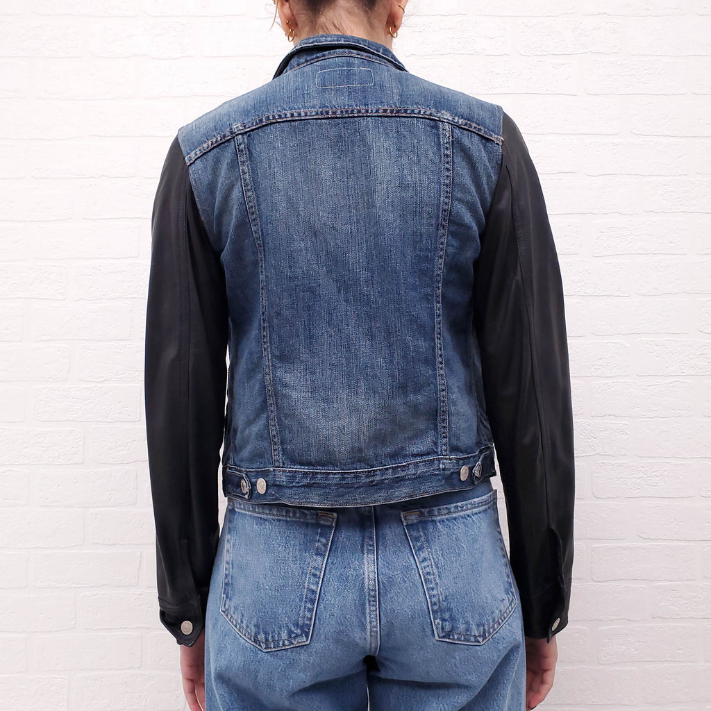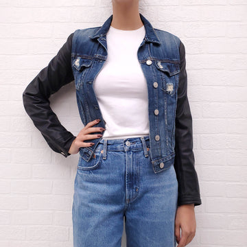 RAG AND BONE DENIM JACKET WITH LEATHER SLEEVES - SIZE S