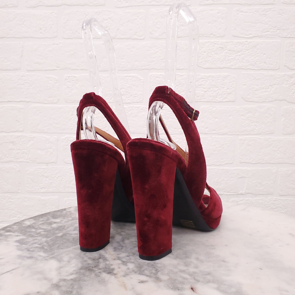 RALPH LAUREN BURGUNDY SUEDE HEELS - SIZE 38.5