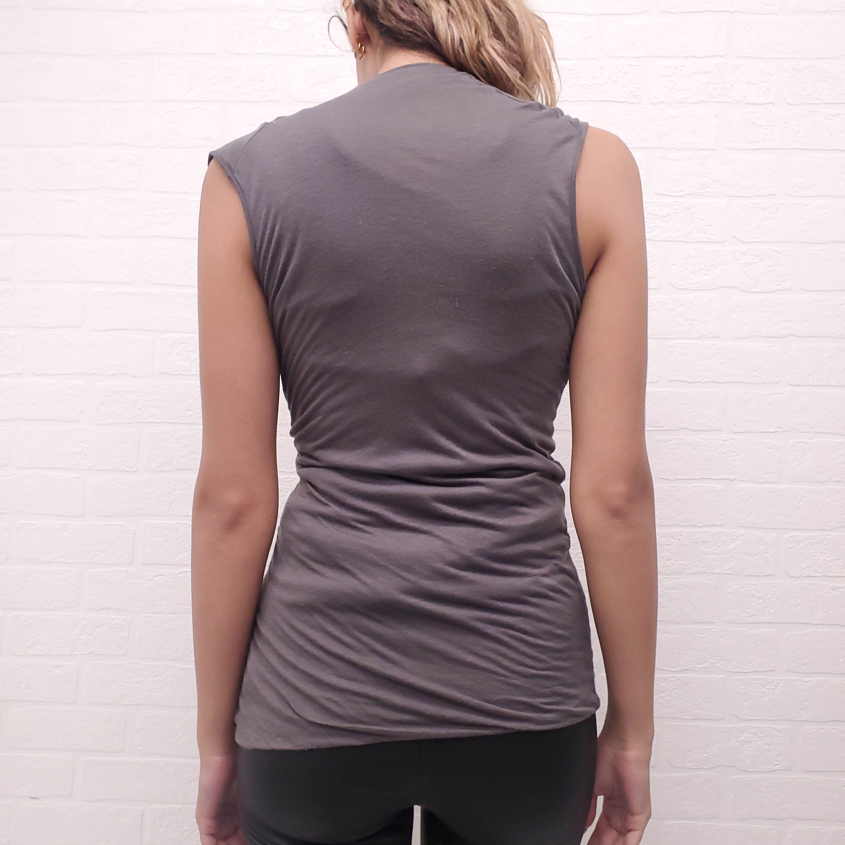 RICK OWENS GREY DRAPED TANK - SIZE 6
