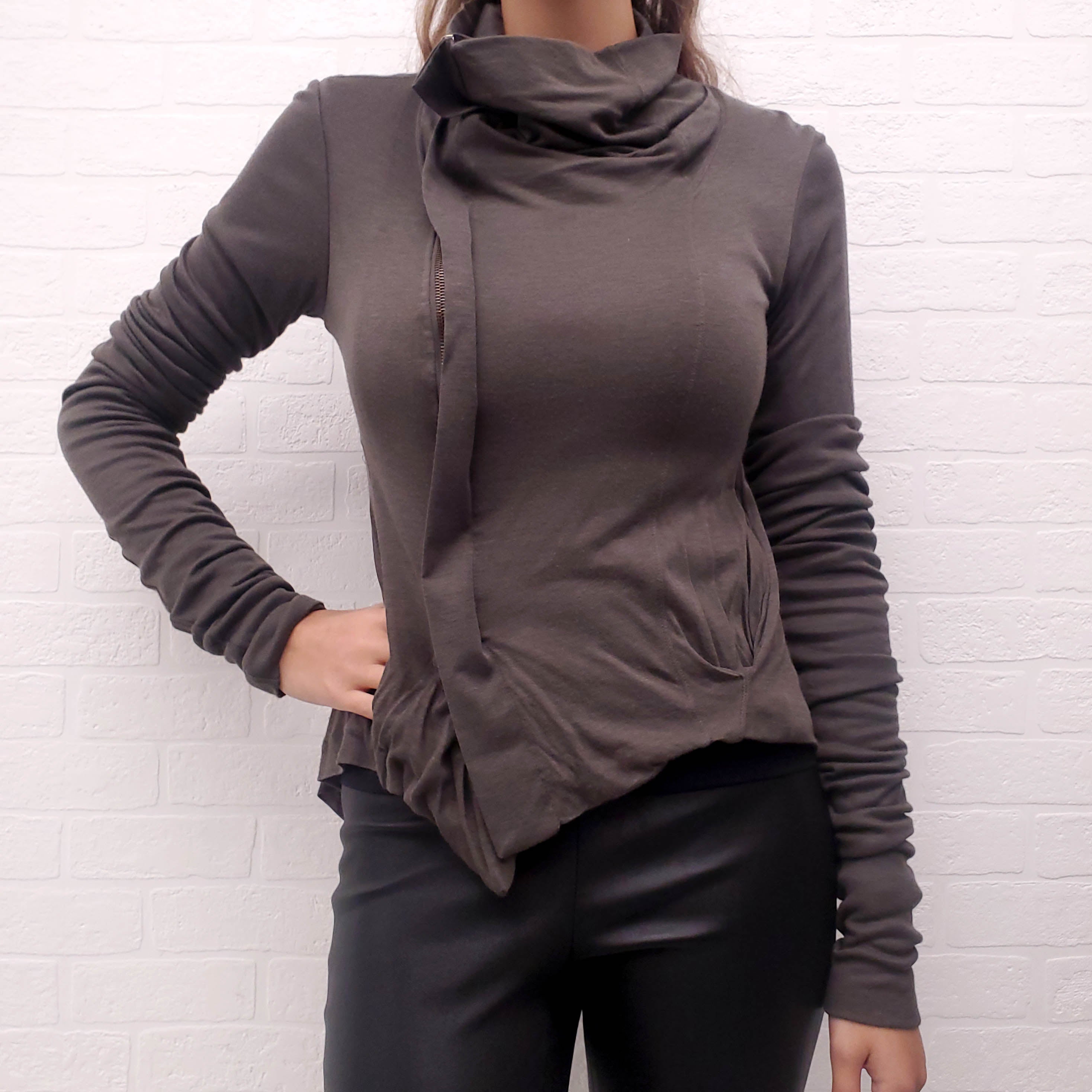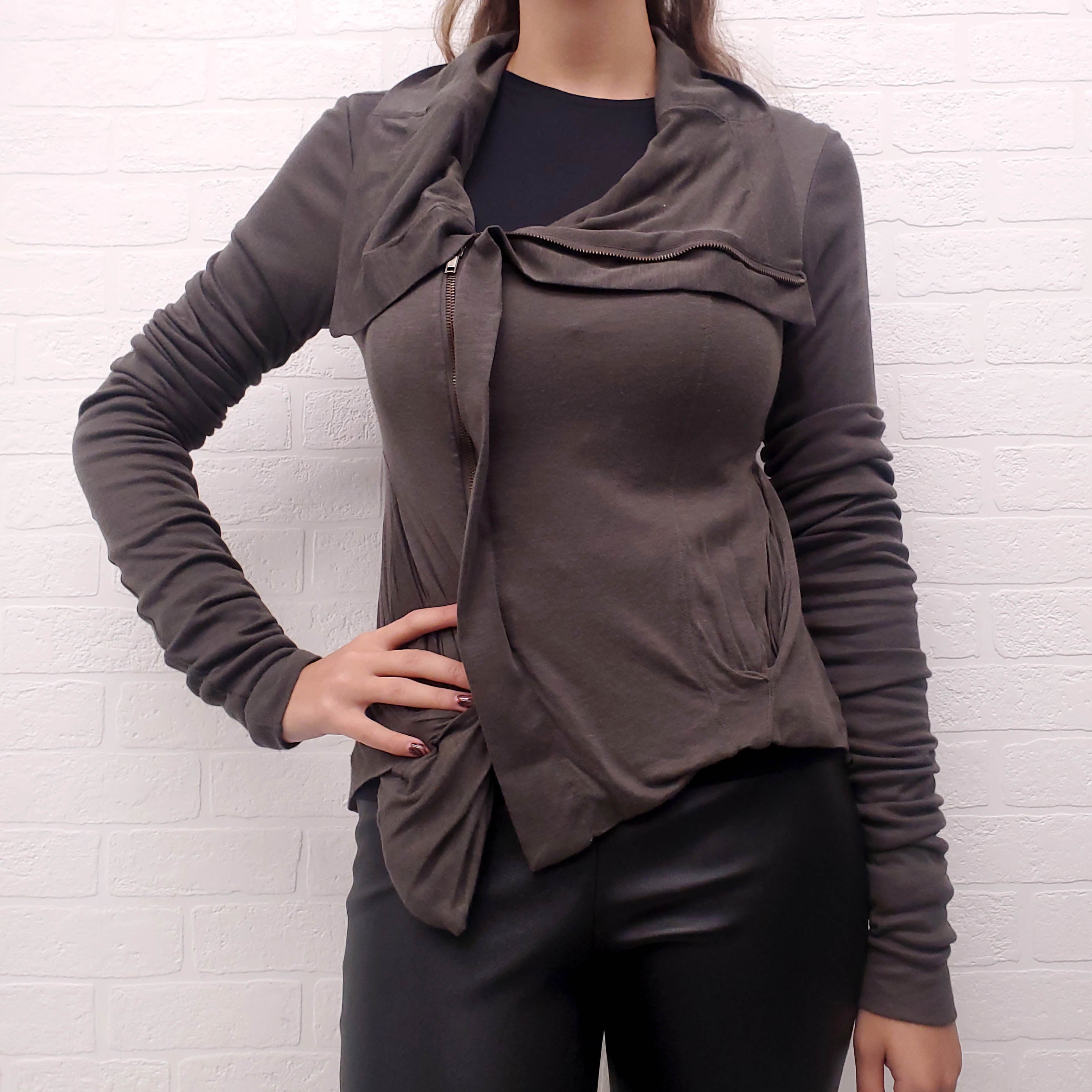 RICK OWENS KAKI BROWN ZIPUP FABRIC JACKET - SIZE 6