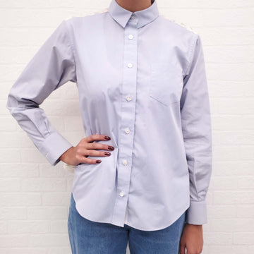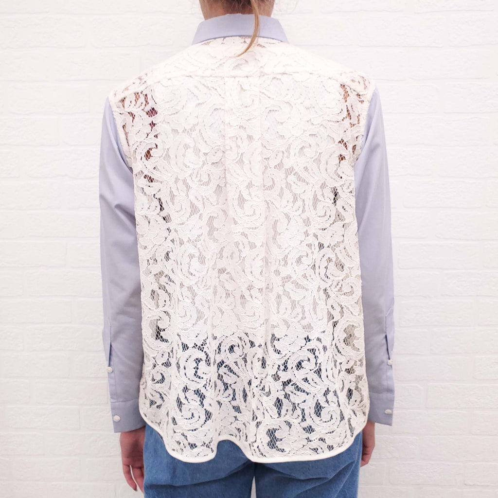 SACAI BLUE COTTON BUTTON UP BLOUSE WITH LACE BACK - SIZE 1/S