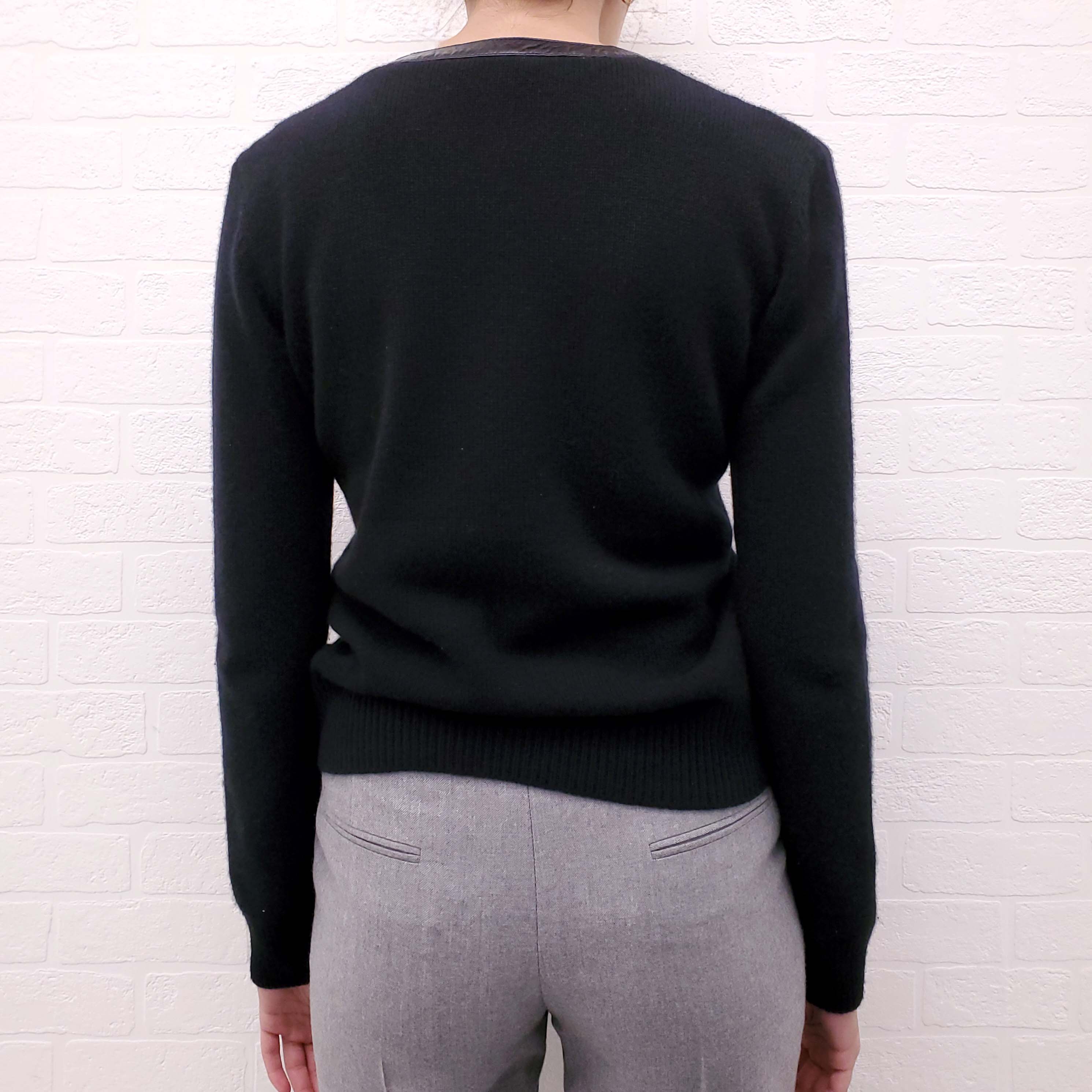 SAINT LAURENT BLACK CASHMERE SWEATER WITH LEATHER DETAIL - SIZE 38