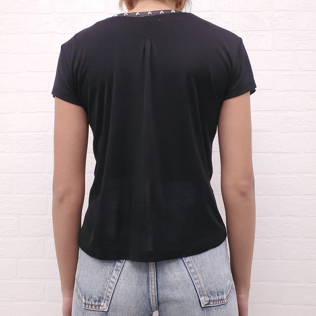 SAINT LAURENT BLACK T-SHIRT WITH GROMMETS - SIZE XS