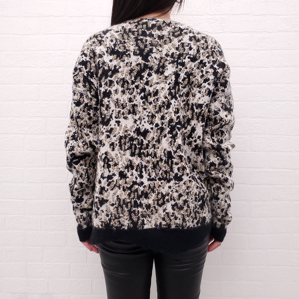 SAINT LAURENT METALLIC LEOPARD DEISTRESSED SWEATER - SIZE S