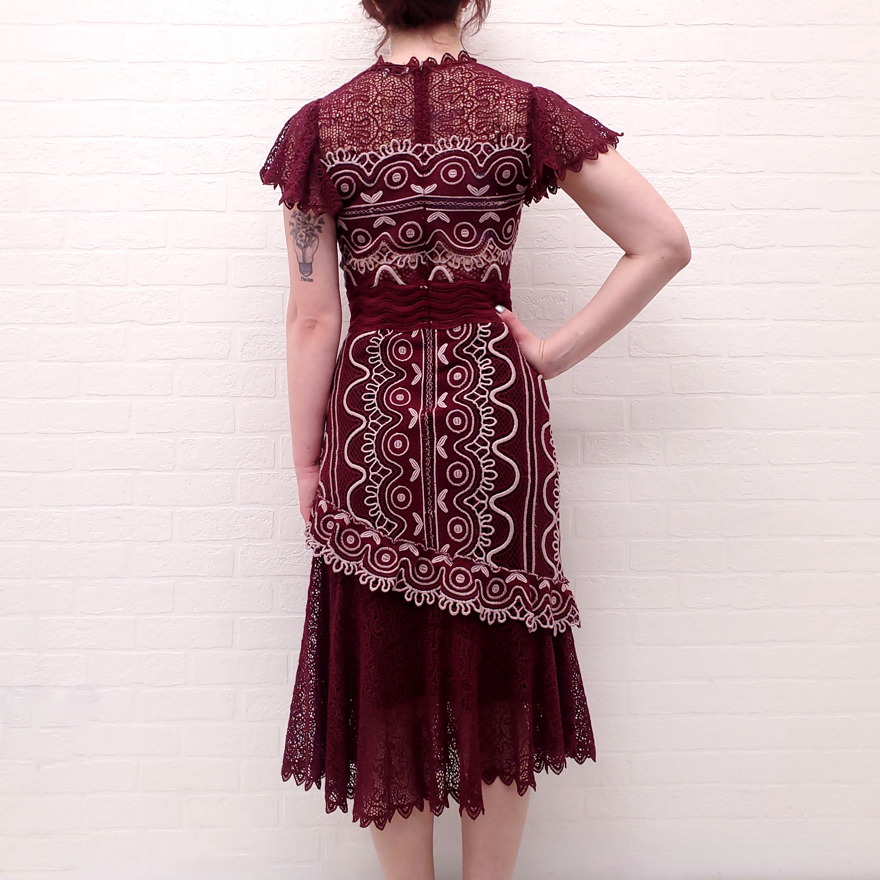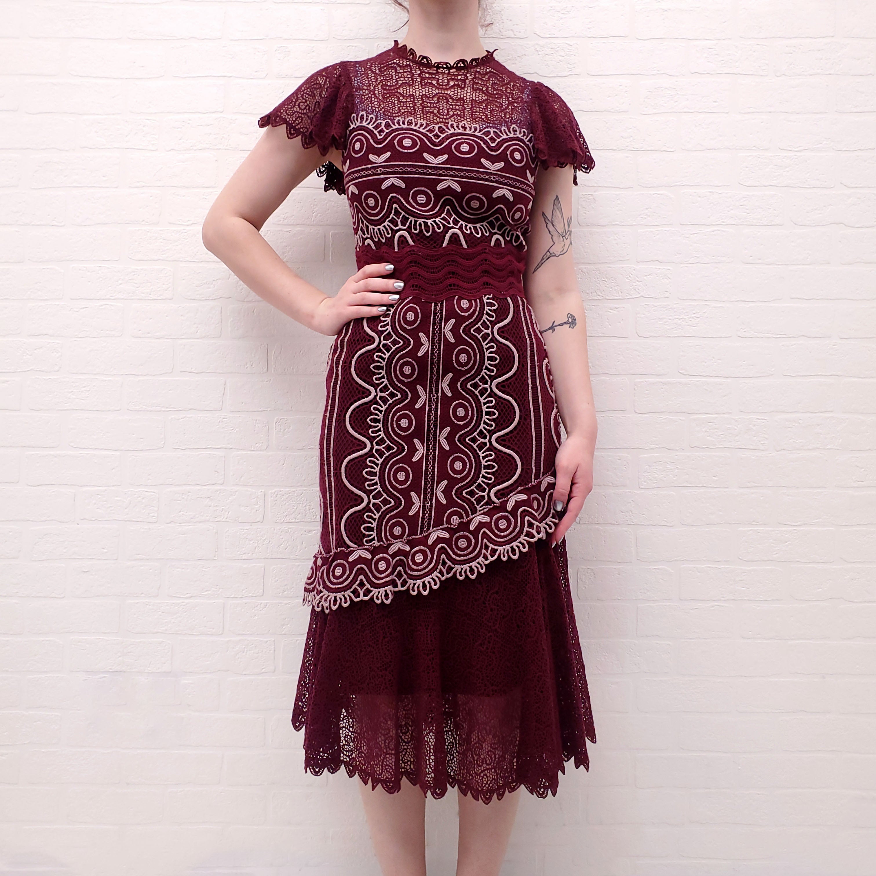SEA NEW YORK LACE BURGUNDY AND PINK PATTERNED DRESS - SIZE 2