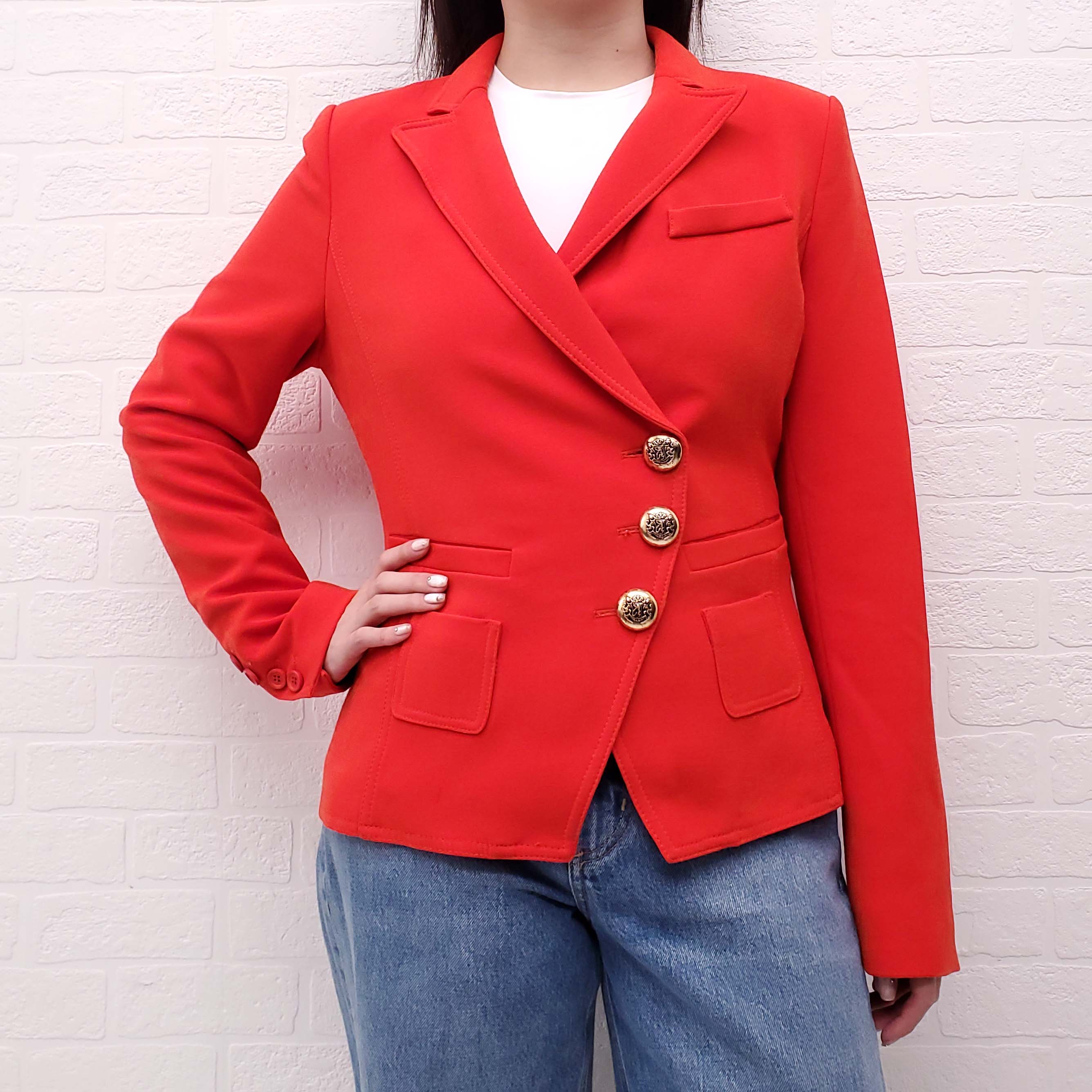 SMYTHE RED ASYMMETRICAL BLAZER WITH GOLD BUTTONS - SIZE 8