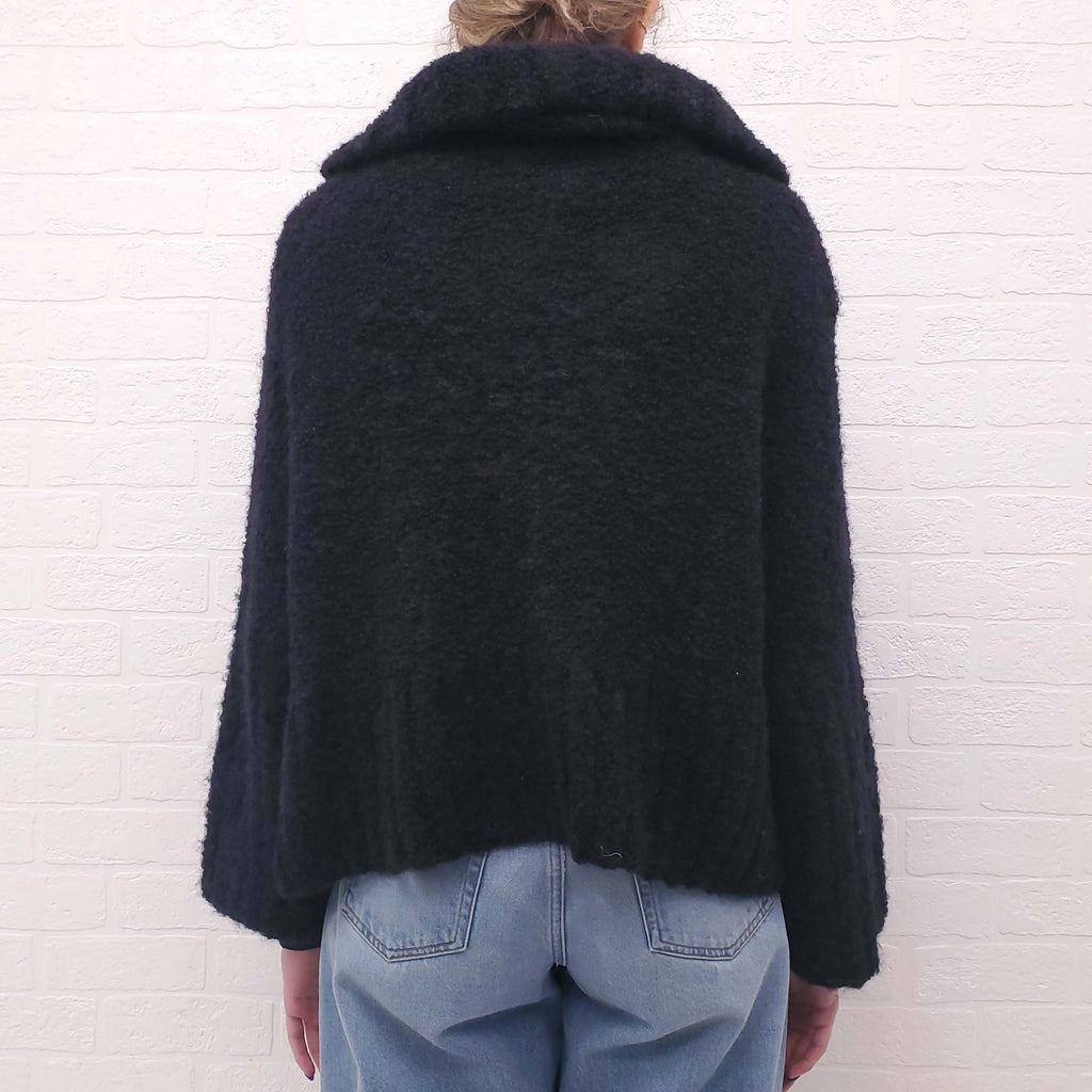 SMYTHE X AUGDEN BLACK ALPACA BLEND KNIT COLLARED SWEATER - SIZE XS