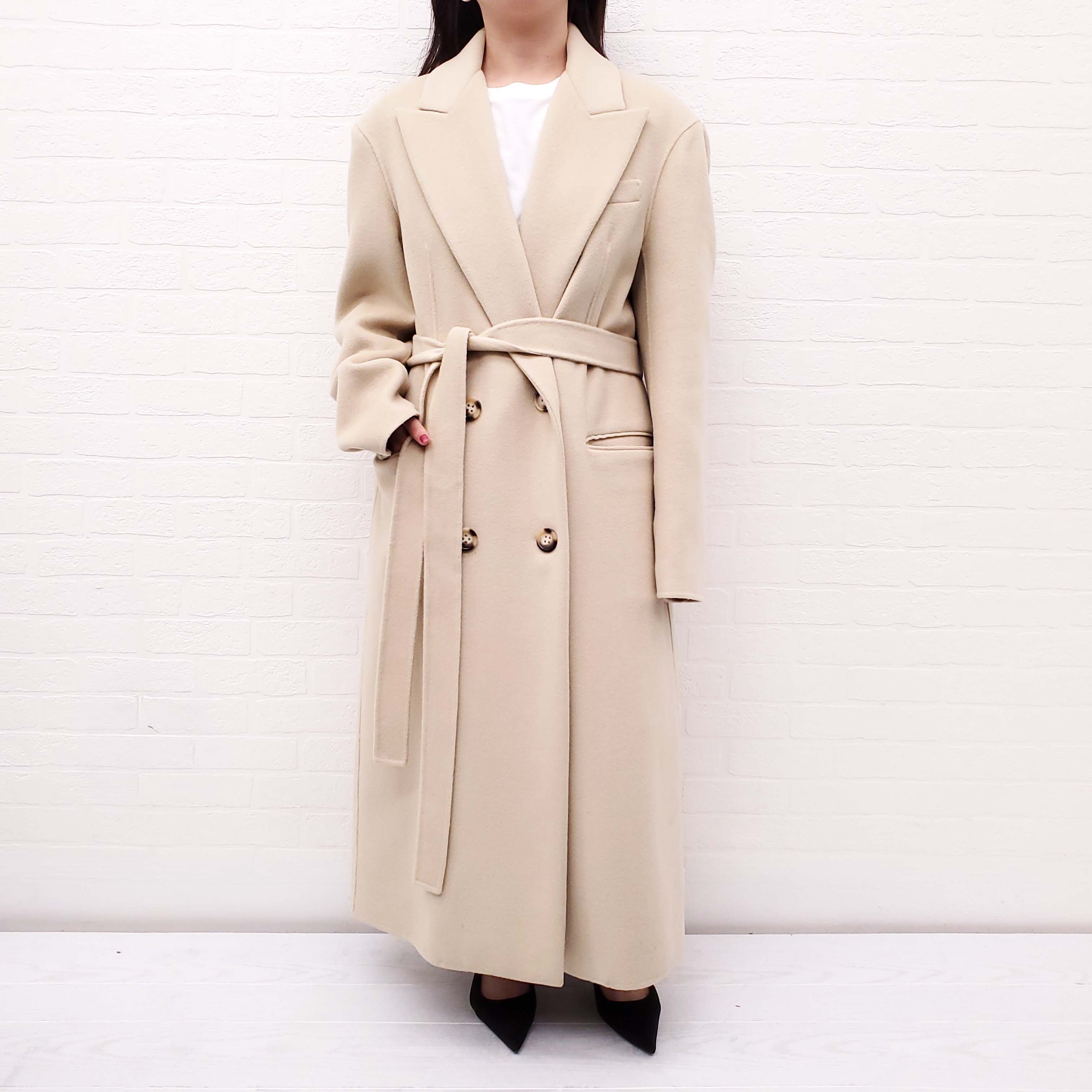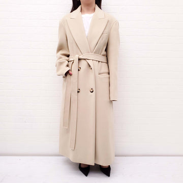 SPORTMAX BEIGE DOUBLE BREASTED COAT WITH BELT - SIZE 8