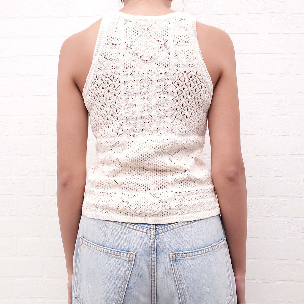 SUZIE KONDI X BASH CROCHET CREAM KNIT TANK TOP - SIZE M