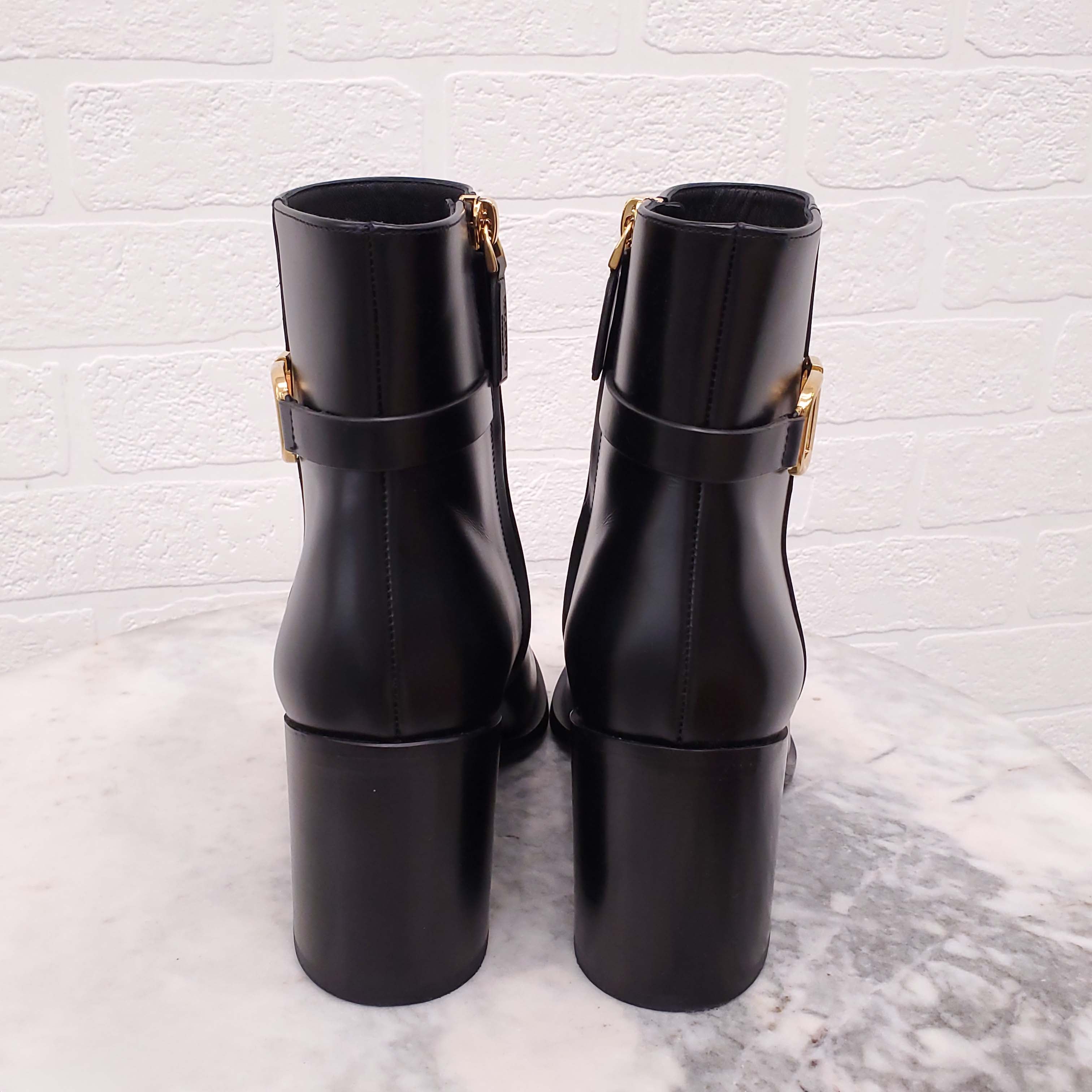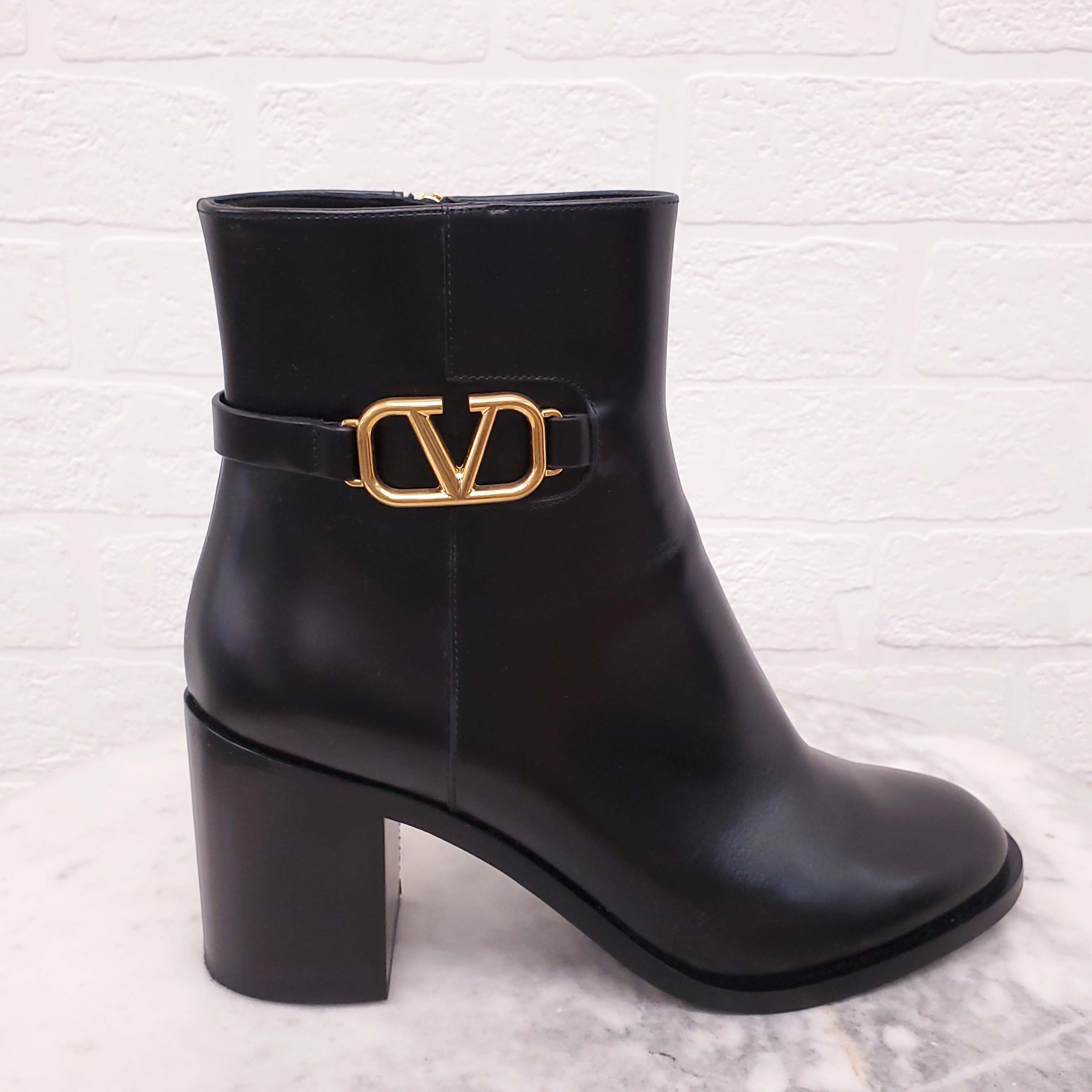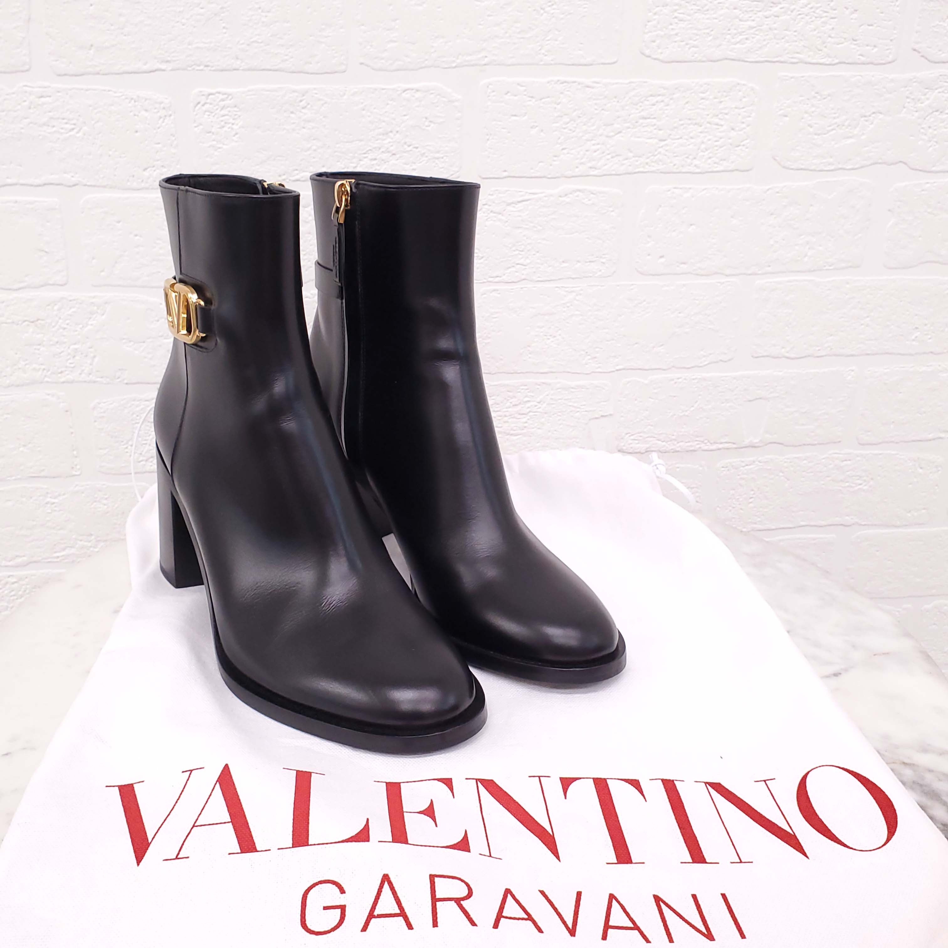 VALENTINO BLACK LEATHER LOGO ANKLE BOOTS - SIZE 37.5