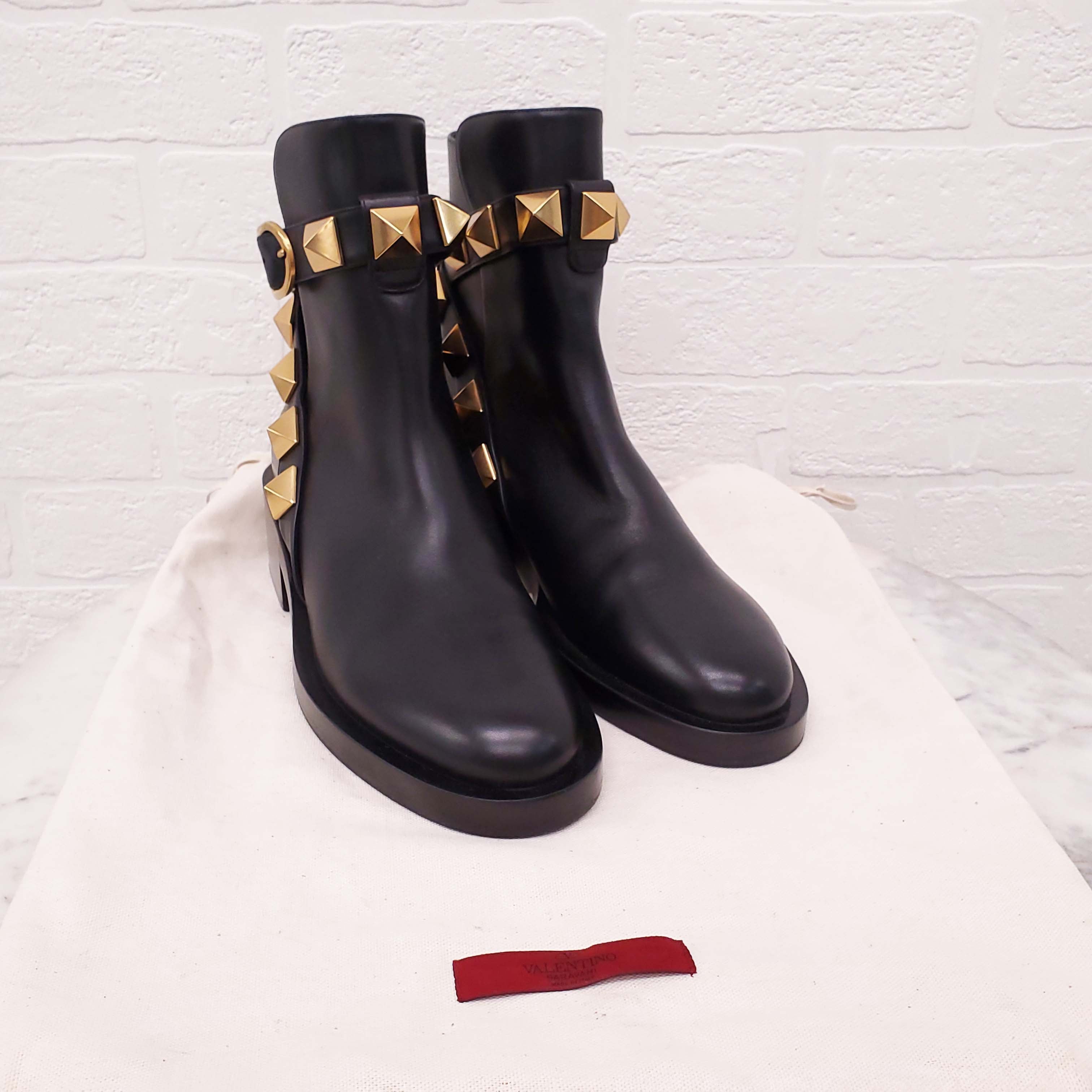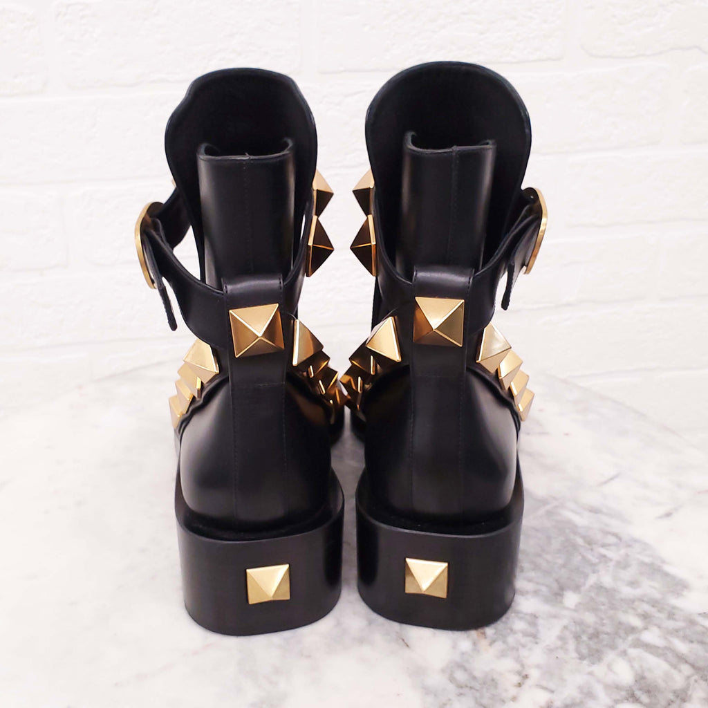 VALENTINO BLACK LEATHER ROMAN ROCKSTUD ANKLE BOOTS - SIZE 38