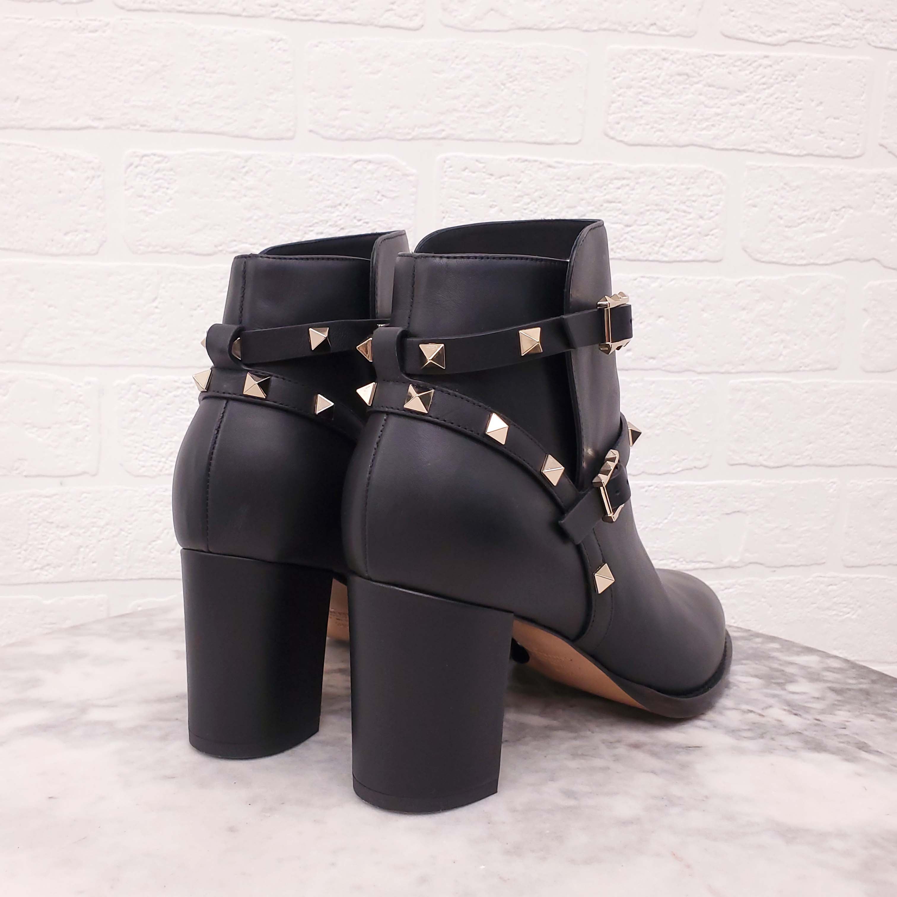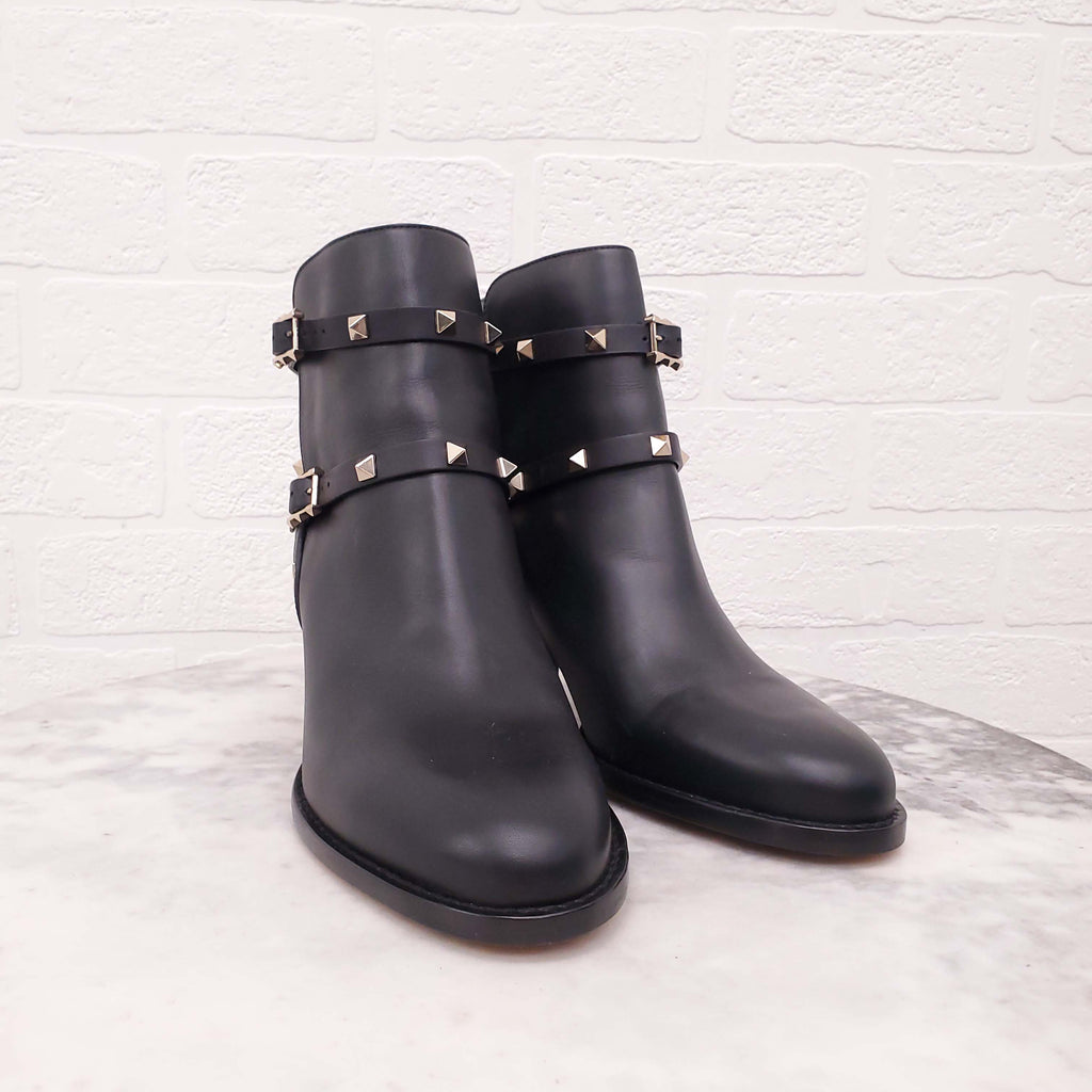VALENTINO BLACK ROCKSTUD BOOTIES WITH BLOCK HEEL - SIZE 39.5