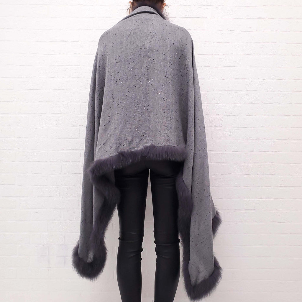 VALENTINO GREY SPARKLE SHAWL WITH FUR