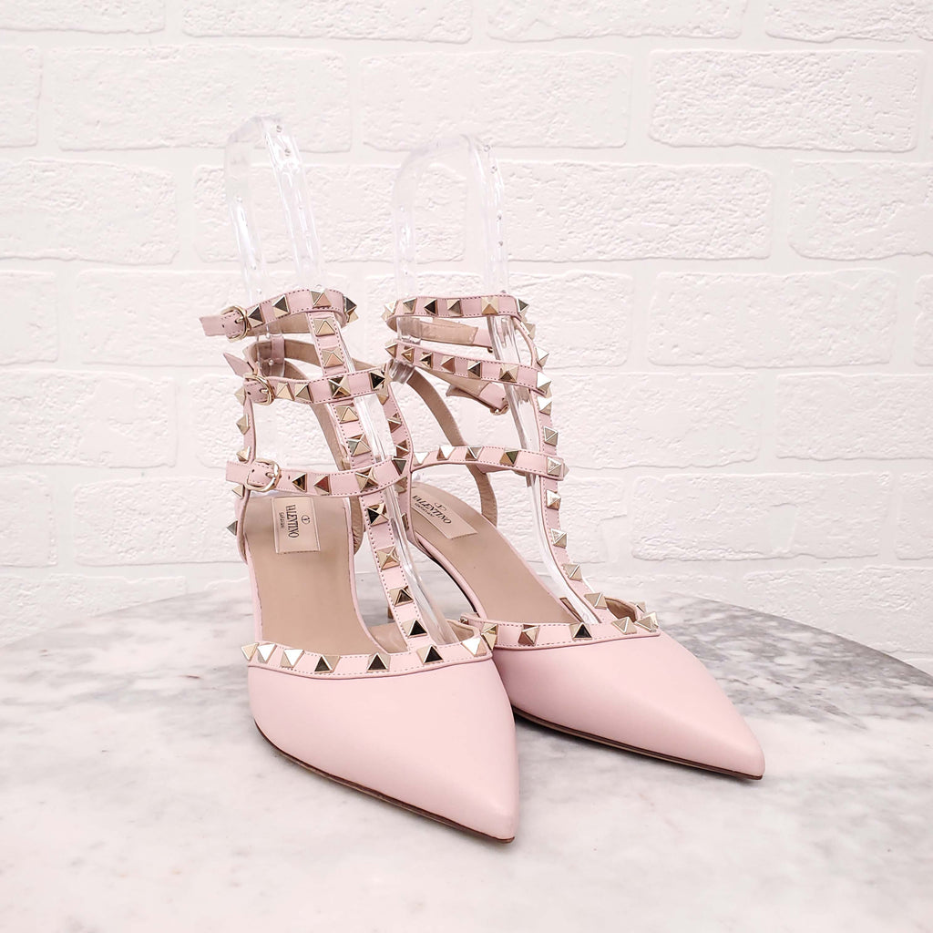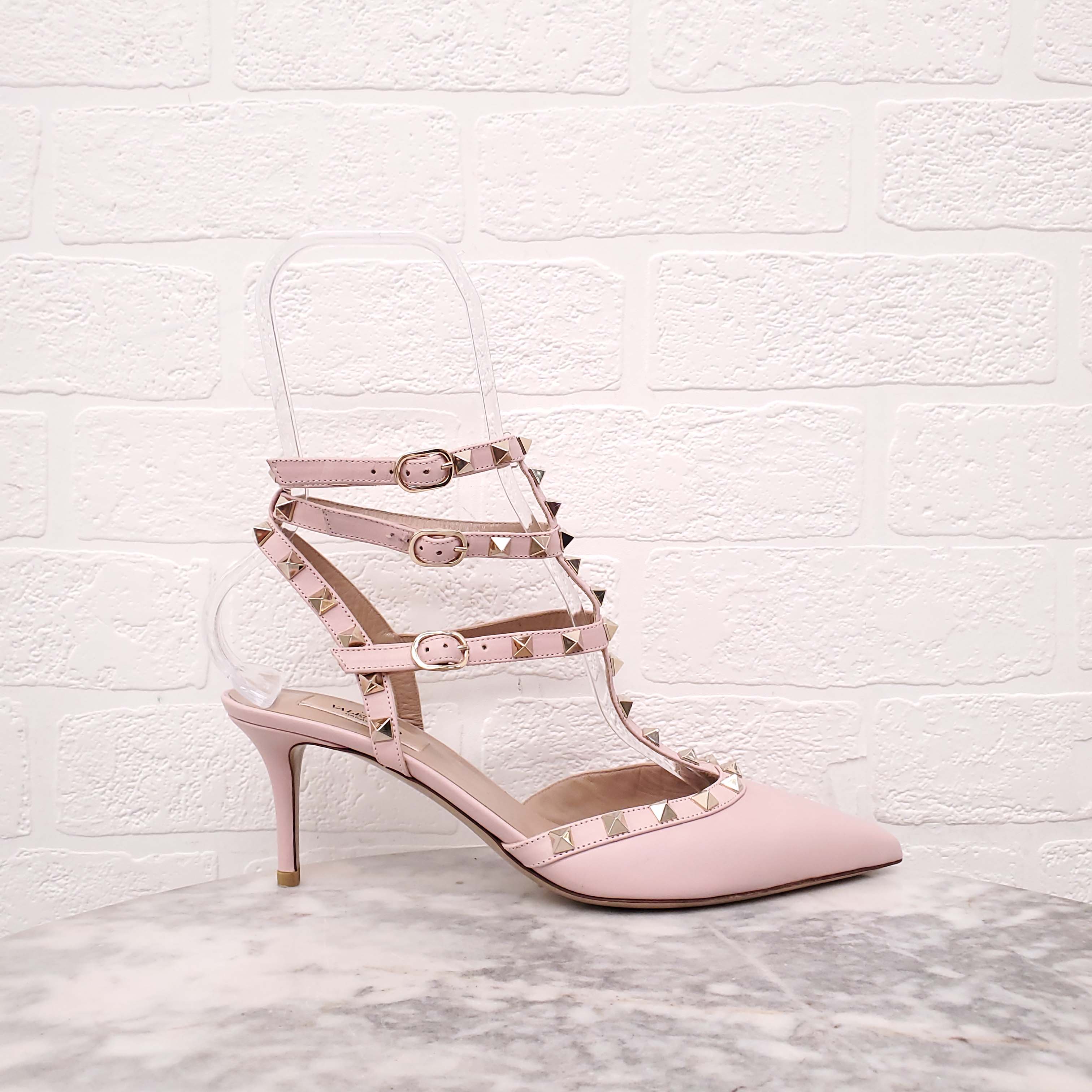 VALENTINO PINK ROCKSTUD ANKLE STRAP KITTEN HEELS - SIZE 40