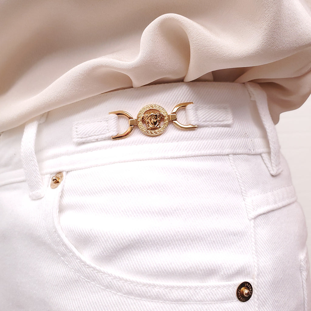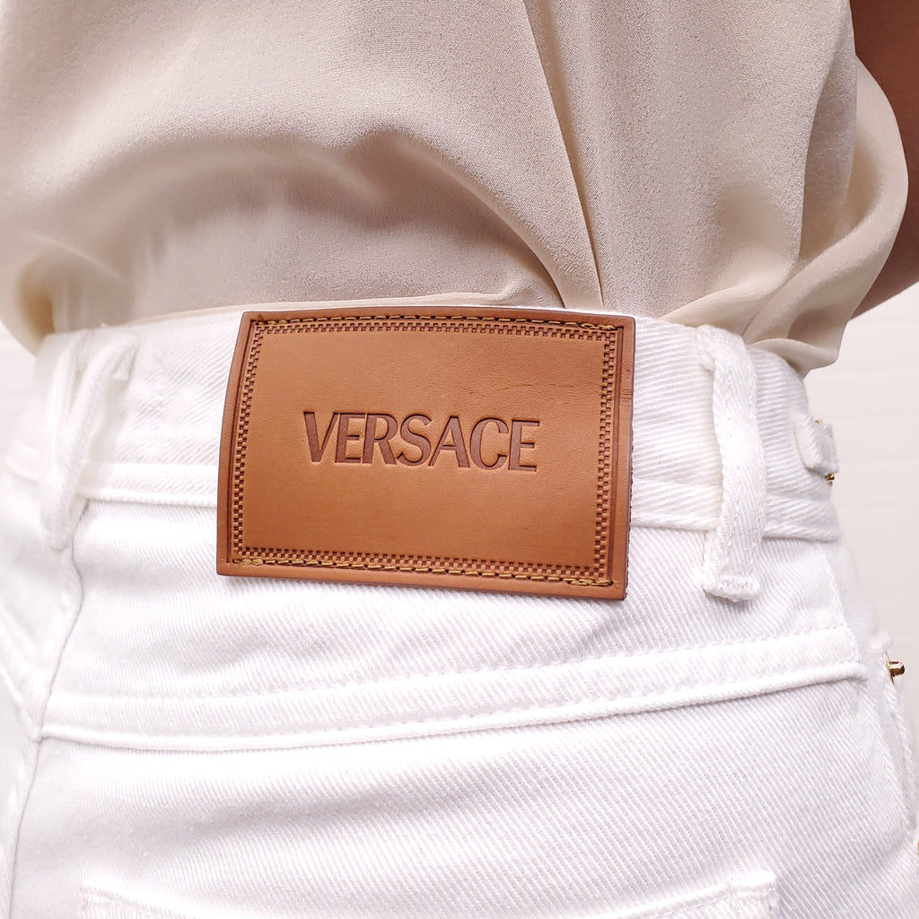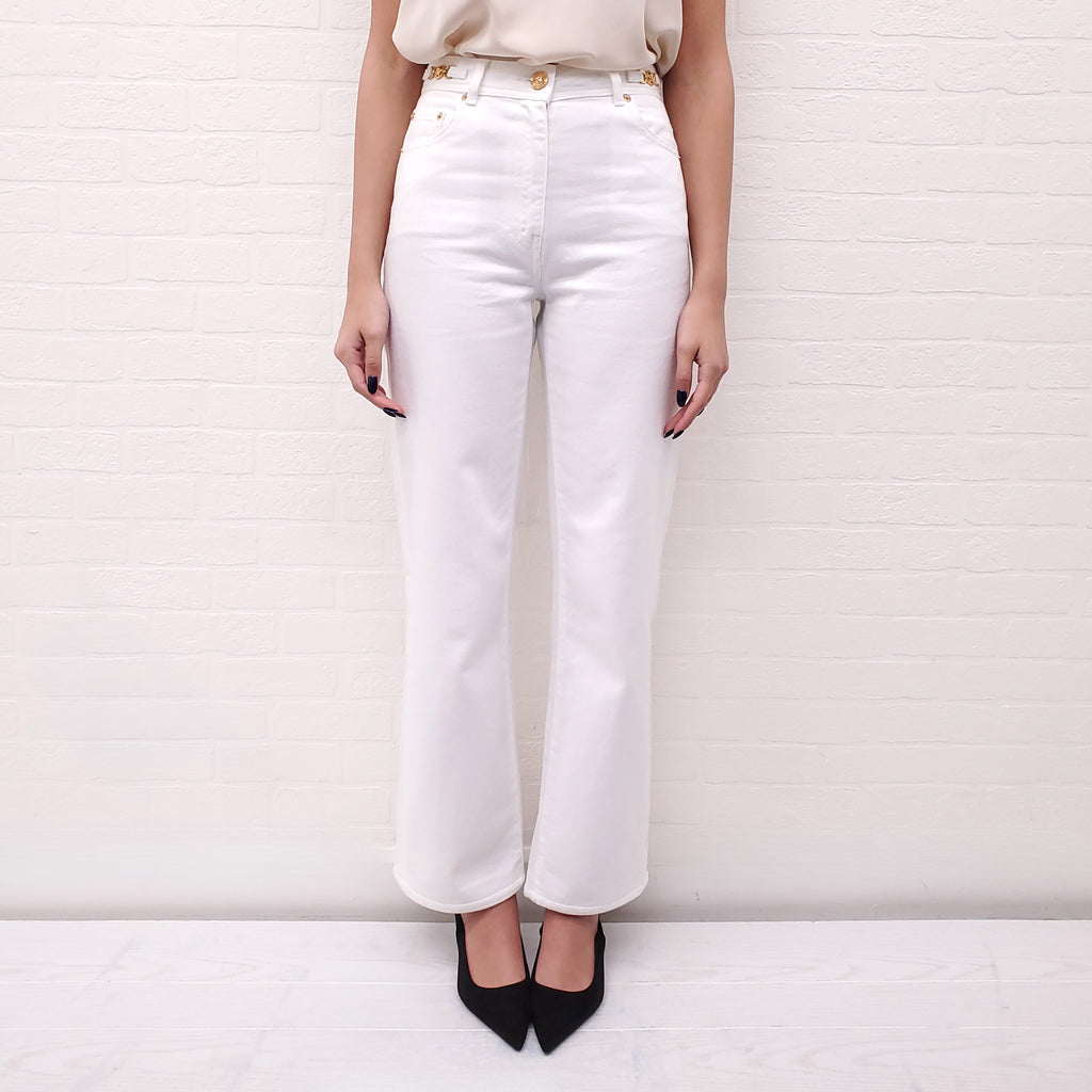 VERSACE MEDUSA ’95 STRAIGHT WHITE JEANS WITH GOLD MEDUSA - SIZE 26